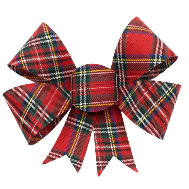 Fiocco Natalizio da Appendere H.18 cm – Decorazione in Tessuto Tartan o Burgundy per Albero e Allestimenti Eleganti
