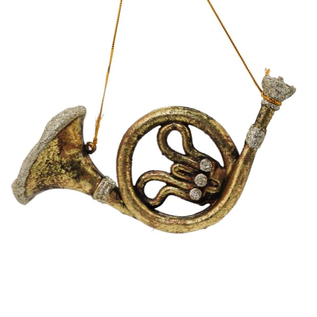 Corno Francese Natalizio da Appendere Oro H.20 cm
