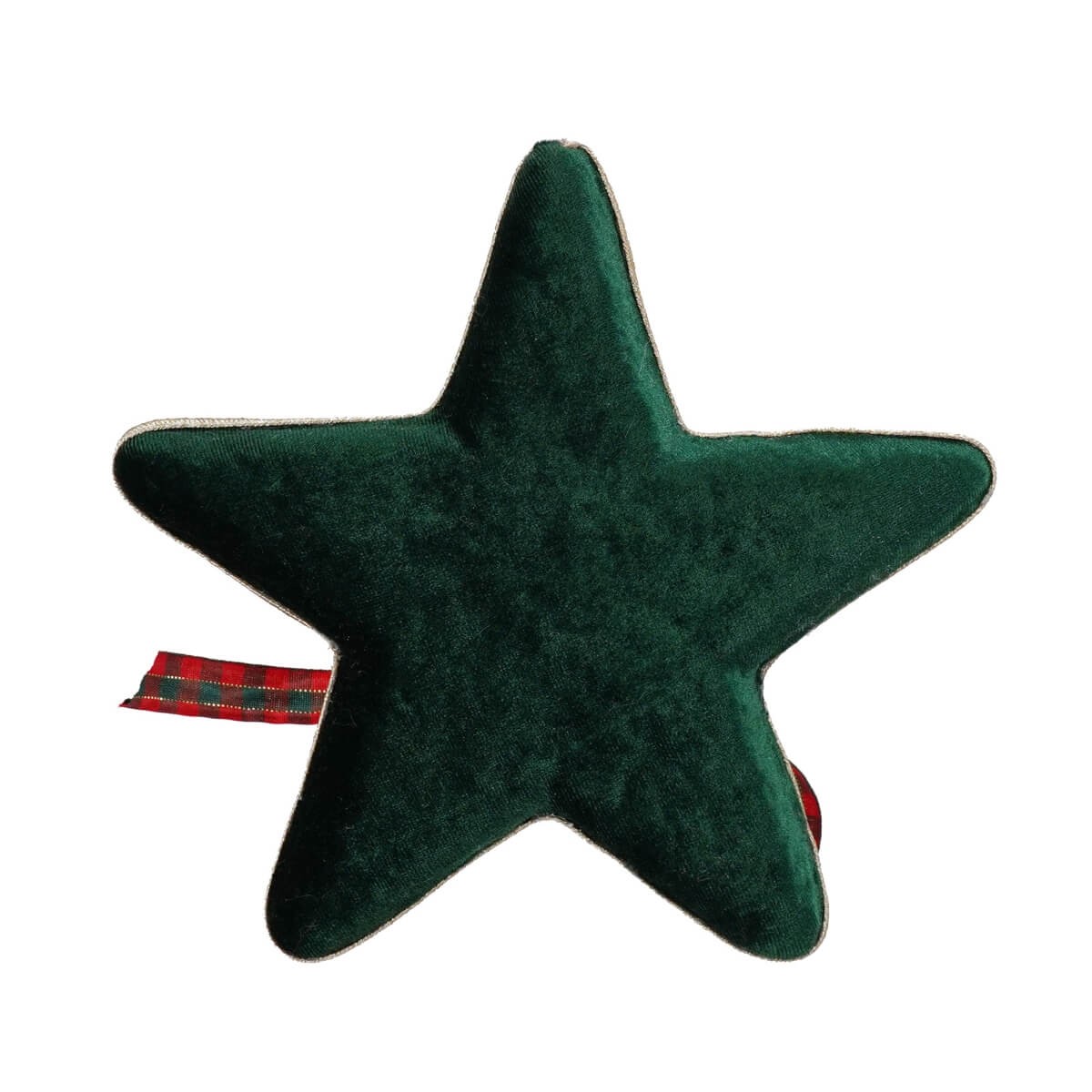 Stella Natalizia da Appendere H.18 cm in Tessuto Vellutato – Verde o Rossa con Dettagli Tartan e Campanelli Oro