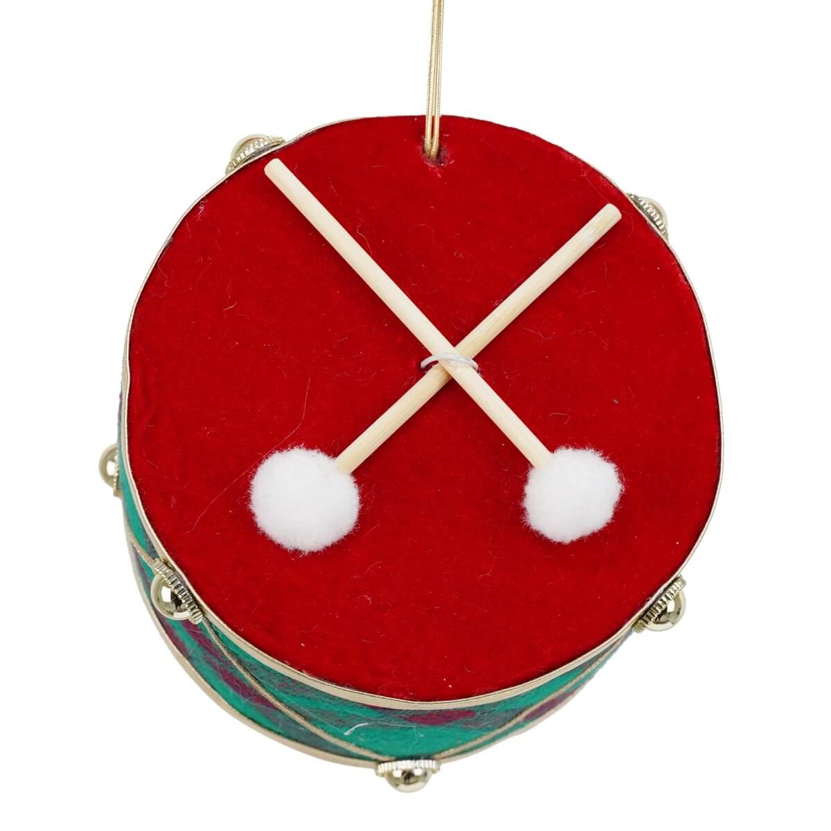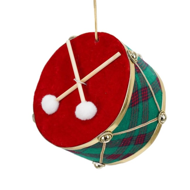 Aggiungi ritmo e stile al tuo Natale con questo elegante tamburo natalizio da appendere! Un decoro unico che richiama la tradizione classica delle feste, rivestito in vellutino rosso e tessuto tartan verde, impreziosito da finiture dorate e bacchette.