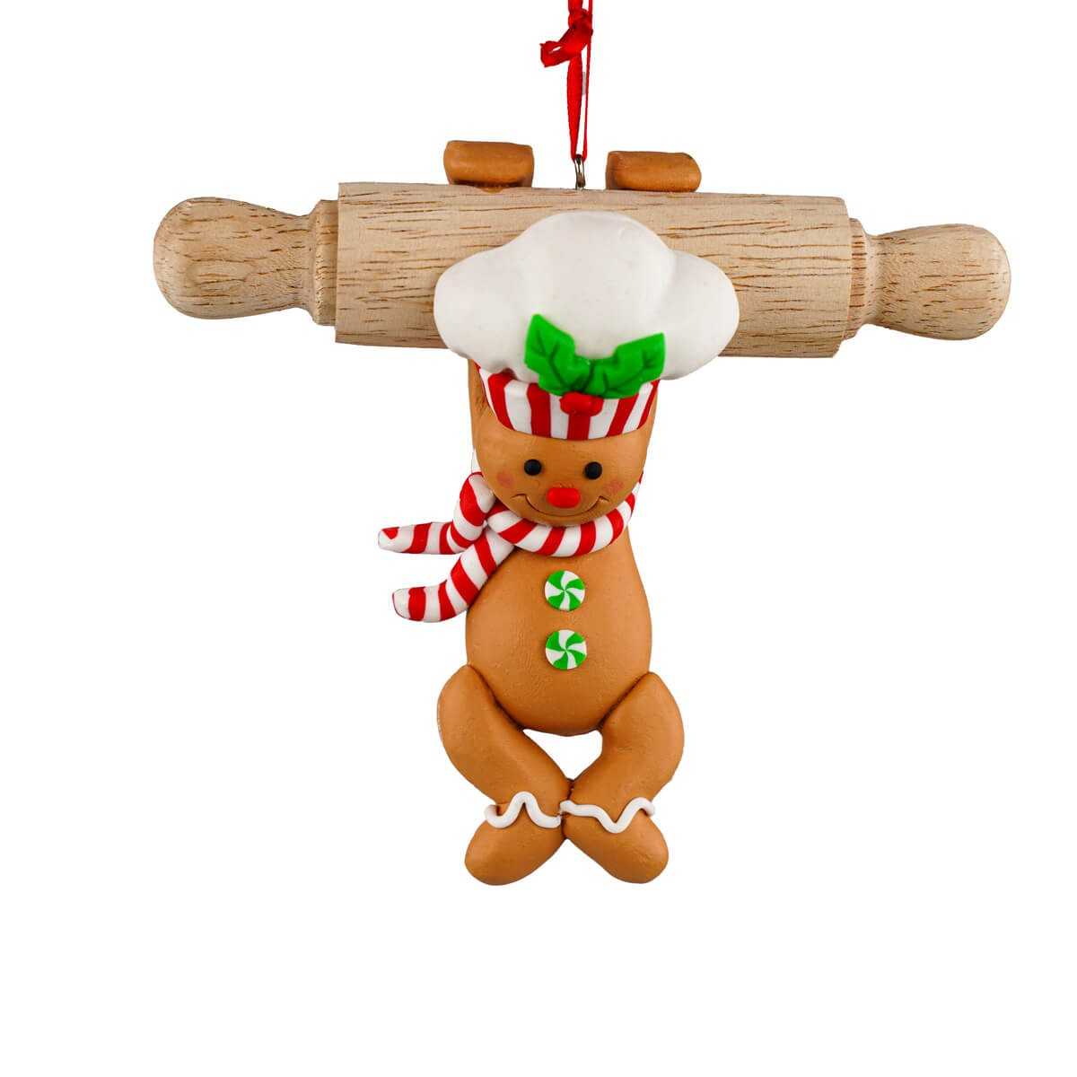 Omino Focaccina Natalizio su Mattarello in Argilla 13x12,5 cm