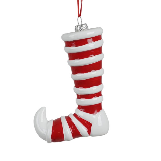 Decorazione Natalizia Stivale di Elfo da Appendere in Plastica – Addobbo Rosso e Bianco 8,8x4,9xH12,8 cm