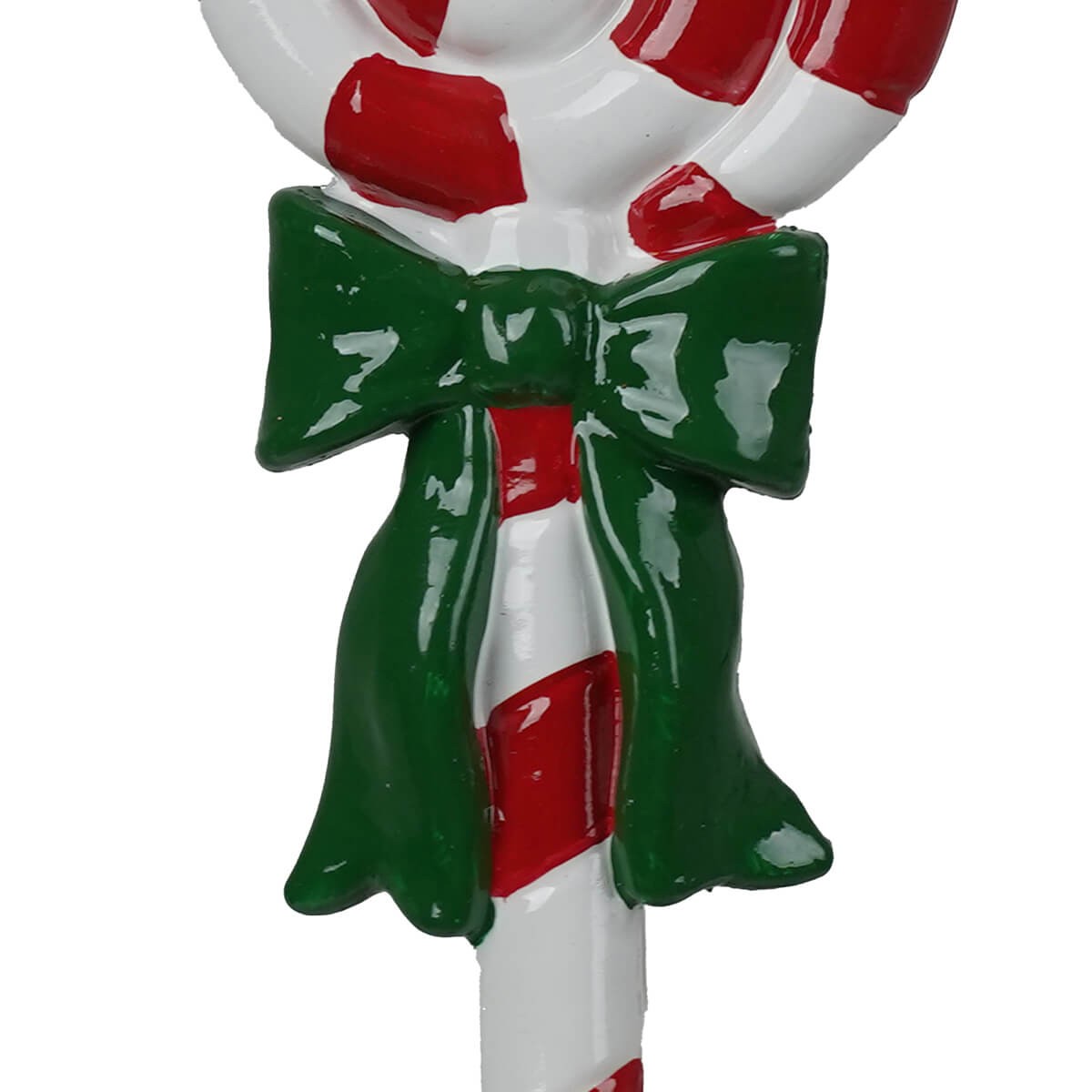 Il suo aspetto a spirale rossa e bianca, impreziosito da un fiocco verde brillante, richiama l’atmosfera delle feste e le dolci caramelle tipiche del periodo natalizio. Le dimensioni di 7,8x2xH.16,8 cm lo rendono ideale per decorare alberi di qualsiasi grandezza, ghirlande o centrotavola, aggiungendo un tocco goloso e raffinato.