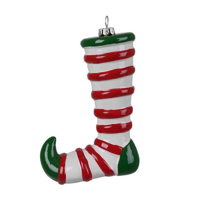 - Decorazione natalizia a forma di stivale di elfo, perfetta per abbellire l’albero o ambienti a tema.