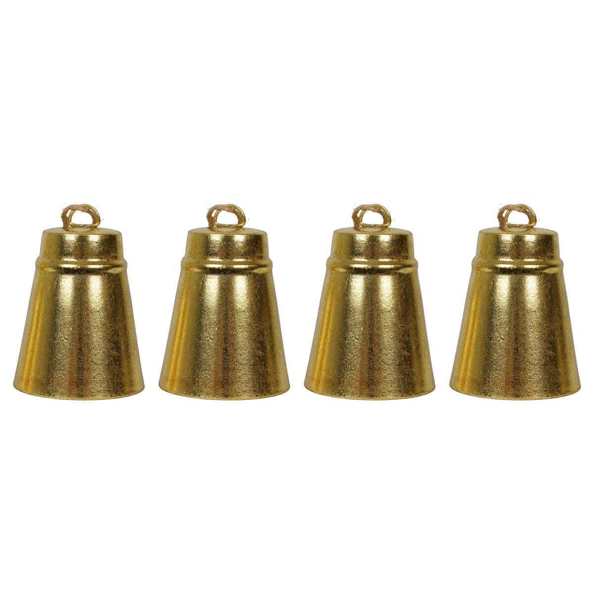 Set 4 Campane Dorate in Metallo con Cordino in Juta – Decorazioni Natalizie Eleganti Stilé Collection