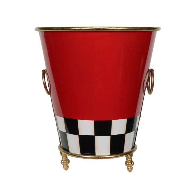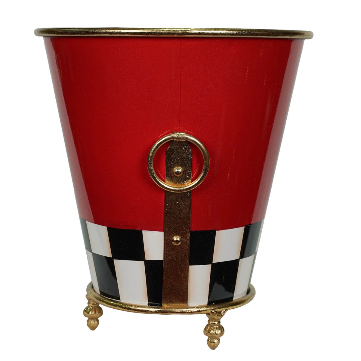 Rendi unica la tua decorazione natalizia con il raffinato vaso natalizio in metallo rosso con dettagli dorati e motivo a scacchiera. Un elemento d’arredo elegante e originale, perfetto per abbellire ingressi, salotti o vetrine durante le feste. Il suo design moderno ma ricco di richiami tradizionali lo rende ideale per ospitare composizioni floreali, rami natalizi o luci decorative, donando calore e stile all’ambiente.