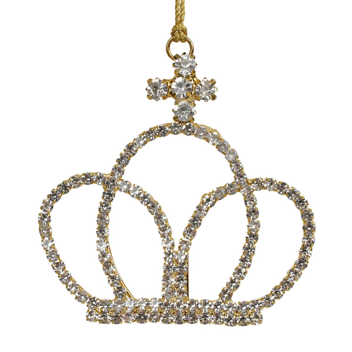 Realizzata con una struttura dorata impreziosita da strass luminosi, questa decorazione a forma di corona riflette la luce con eleganza, creando un effetto brillante e prezioso. Le sue dimensioni di 8x8 cm la rendono perfetta da appendere all’albero di Natale, a ghirlande o centrotavola, per aggiungere un dettaglio chic e sofisticato.