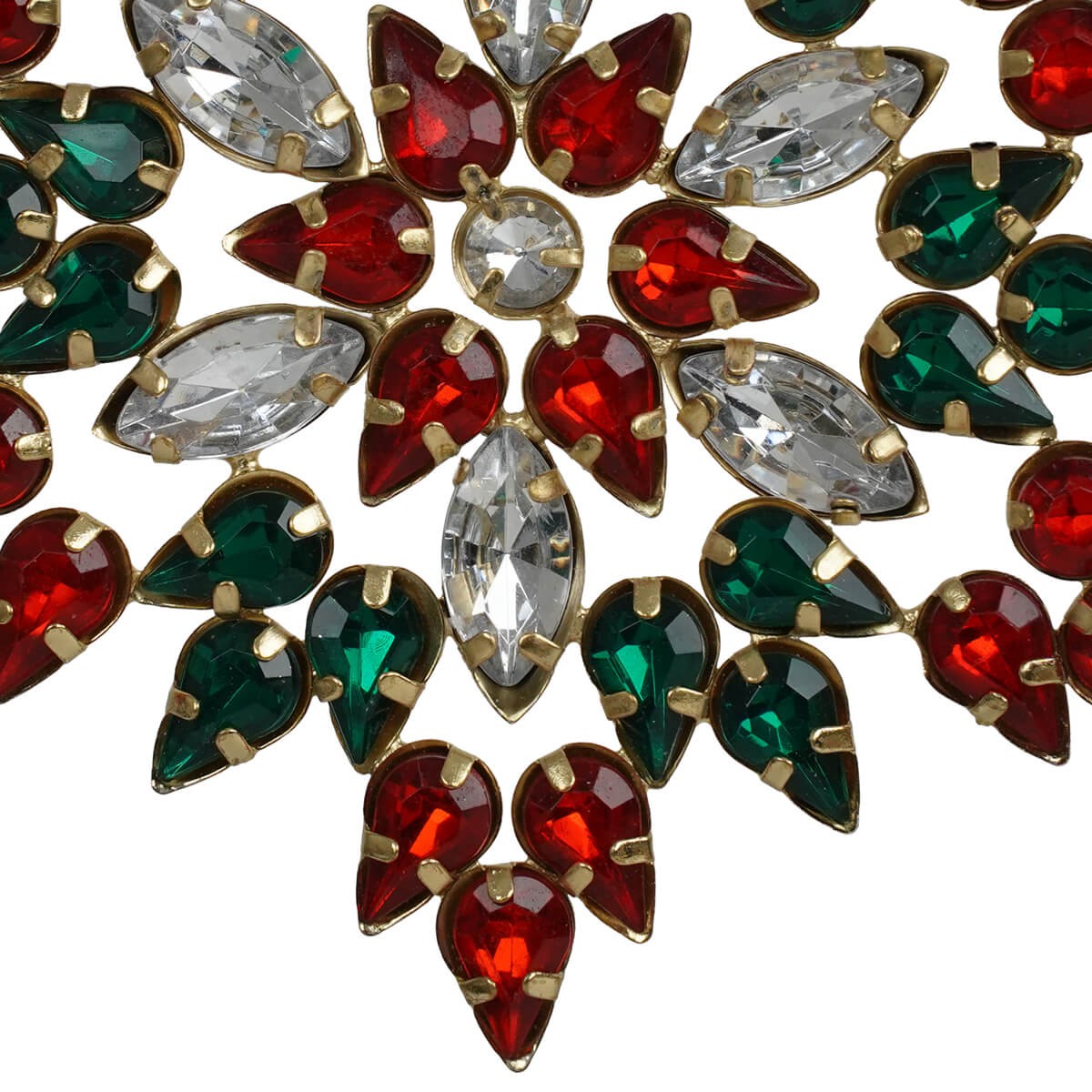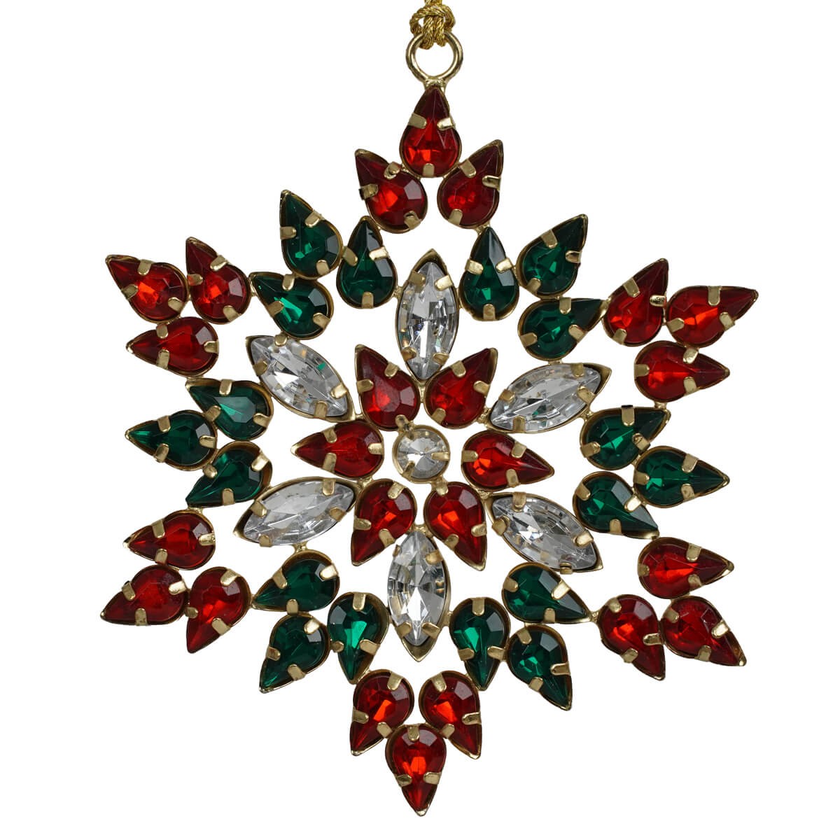 Aggiungi un tocco di magia e raffinatezza alle tue decorazioni natalizie con il fiocco di neve natalizio con gemme colorate. Realizzato con una base dorata impreziosita da cristalli rossi, verdi e trasparenti, questo addobbo cattura la luce in modo spettacolare, creando un effetto luminoso e festoso ideale per il tuo albero di Natale o per decorare finestre, pareti e ghirlande.
