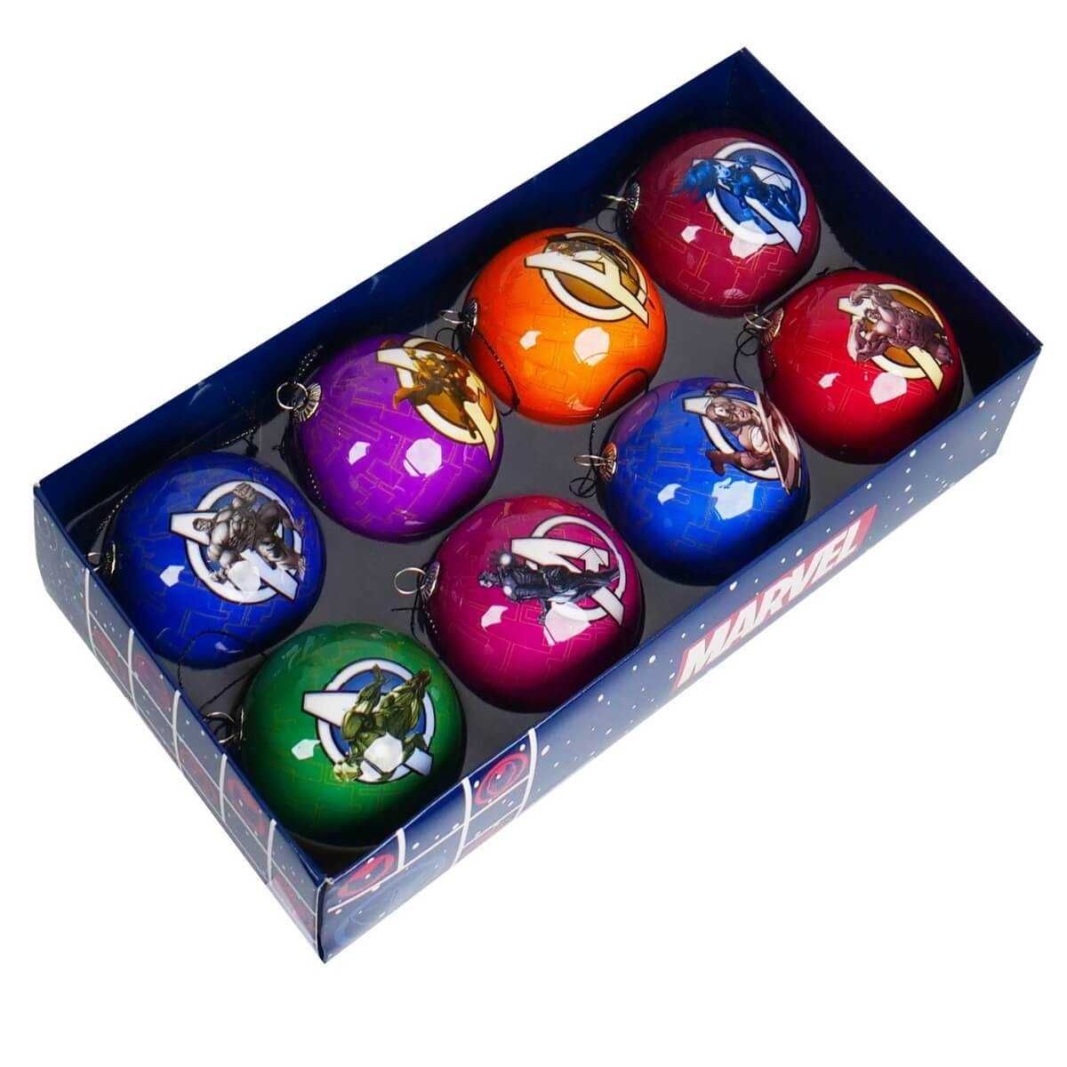- Tema Marvel Avengers: Set di 8 palline natalizie con i supereroi più amati dell’universo Marvel, come Iron Man, Captain America, Hulk, Thor e altri, perfetto per aggiungere un tocco di avventura al tuo albero di Natale.