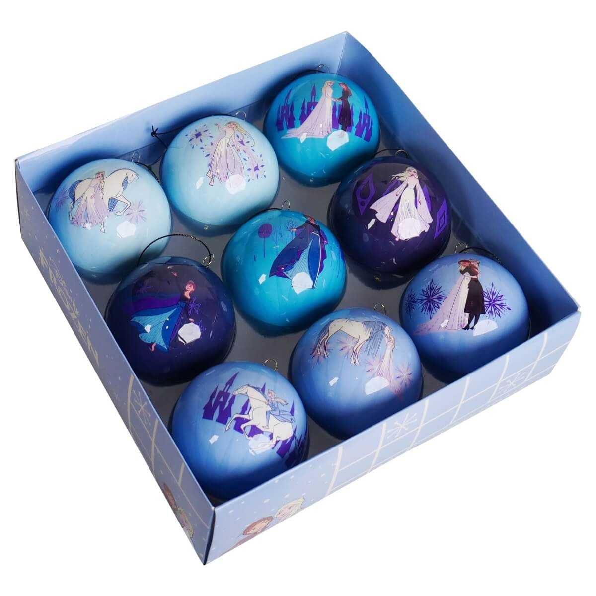 Set 9 Palline di Natale Frozen in Plastica, Ø 7,5 cm – Decorazioni Natalizie Disney con Elsa e Anna