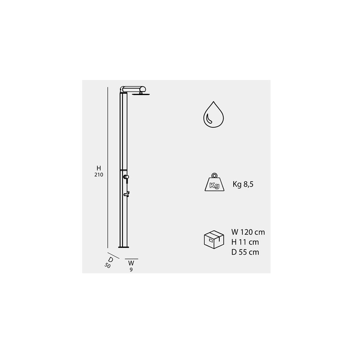 Con un'altezza di 210 cm e un peso di soli 8,5 kg, la doccia Quick Arkema è facile da installare e si adatta perfettamente a qualsiasi spazio esterno. Inoltre, il design della doccia è pensato per essere al 100% riciclabile, sostenibile e a risparmio energetico.