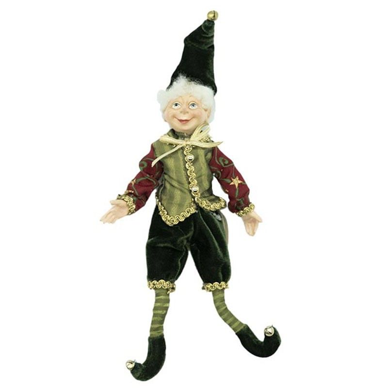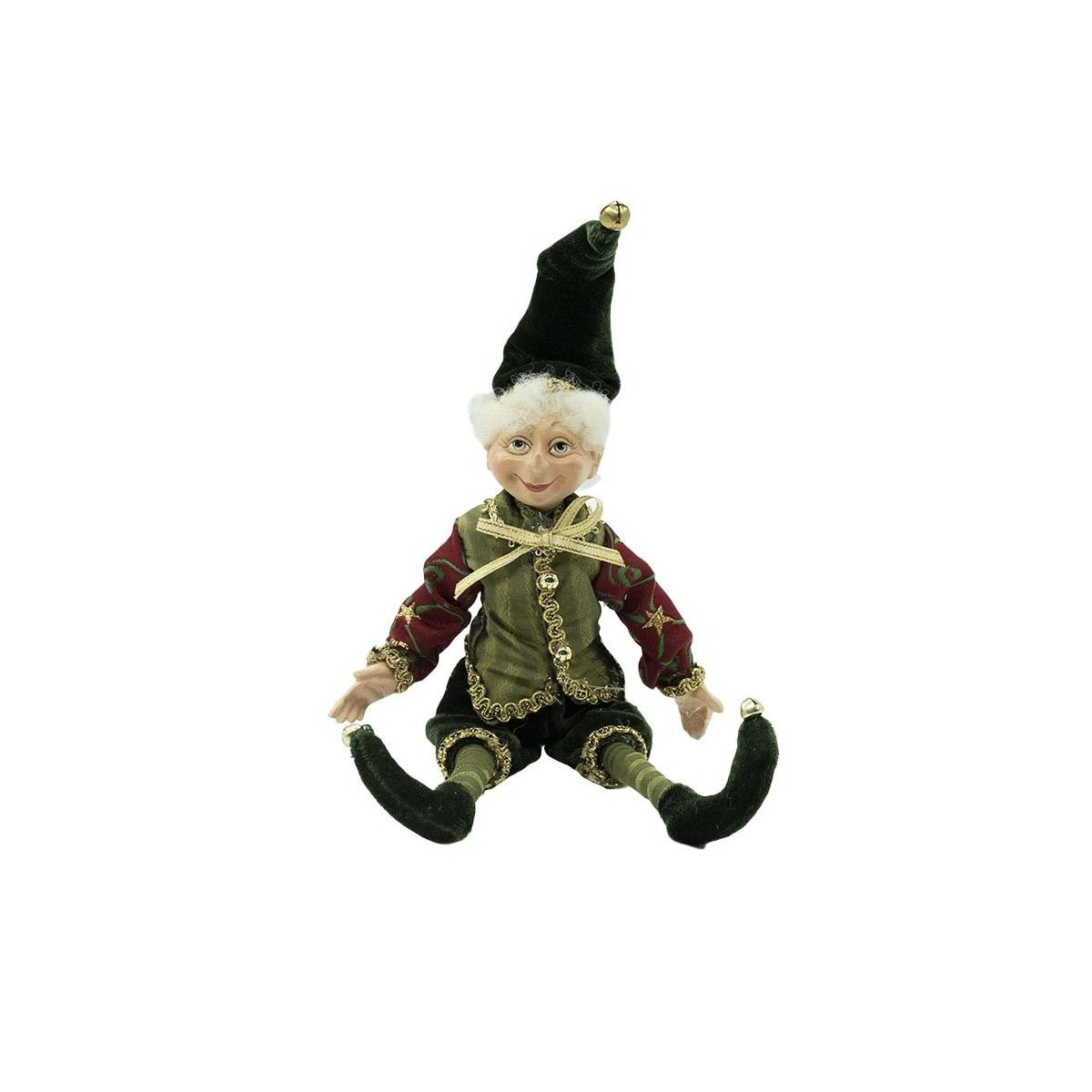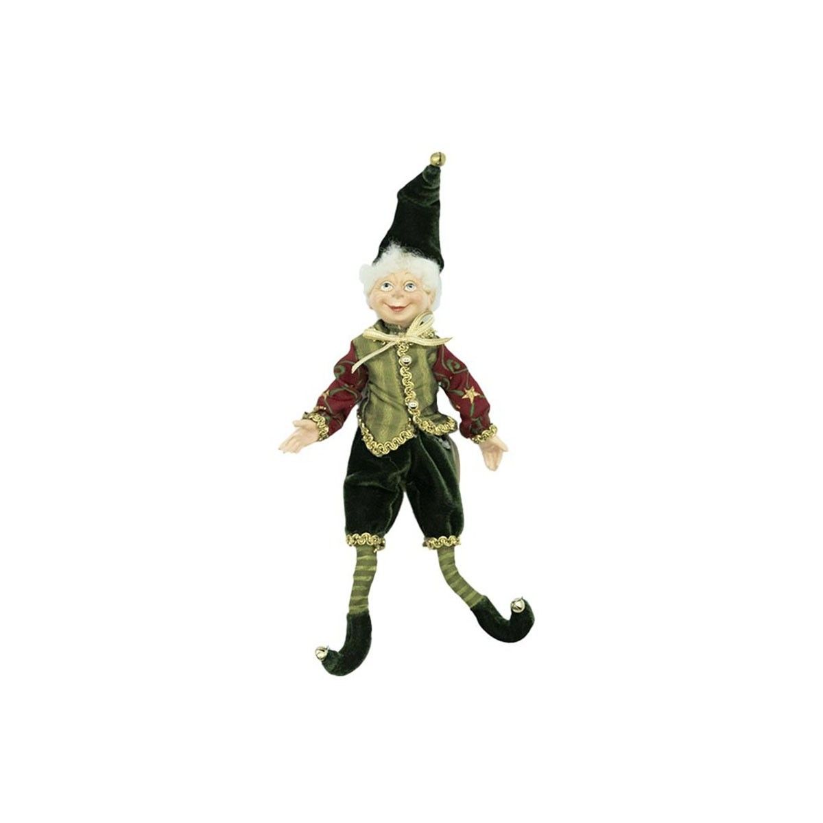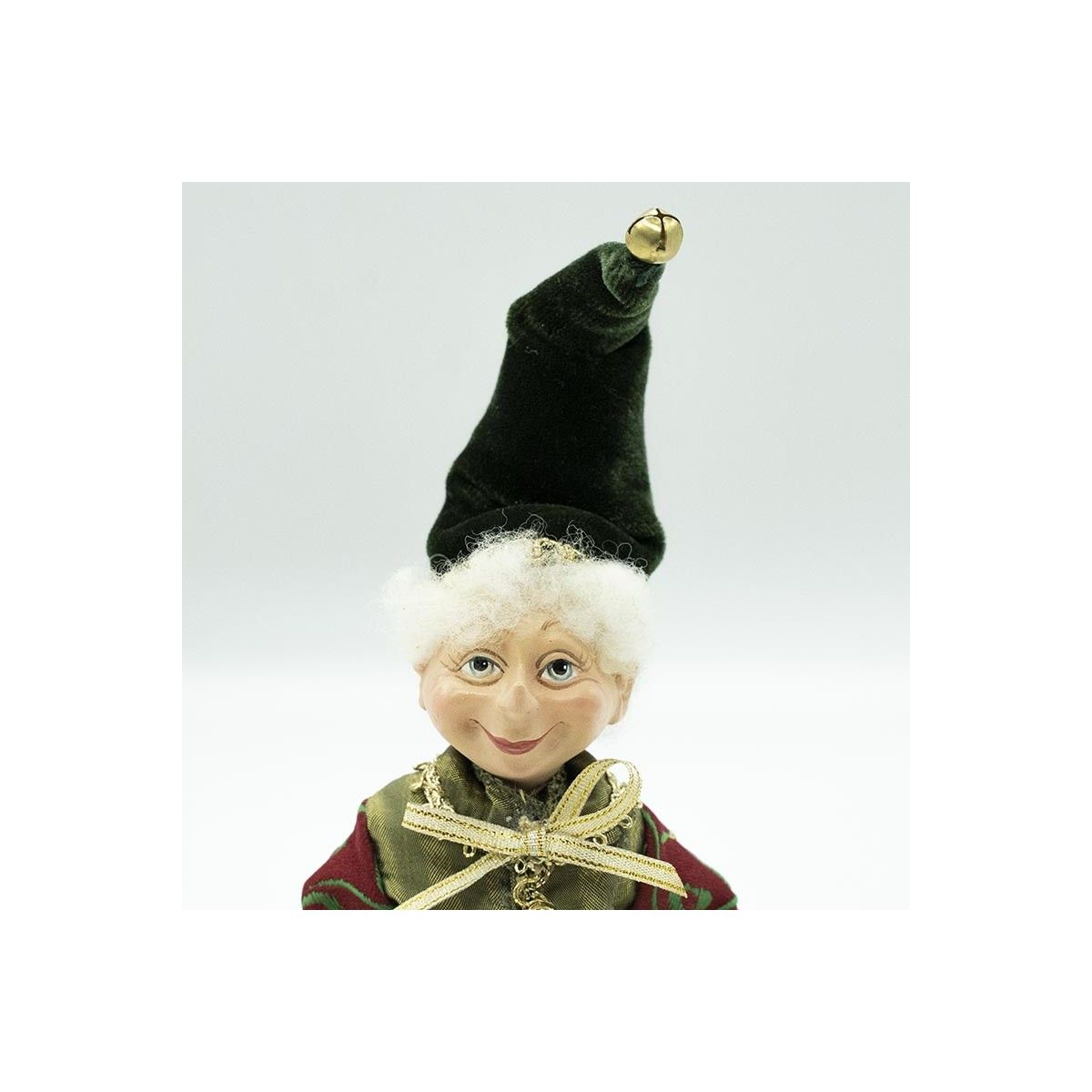 Elfo Natalizio con Abito Verde e Burgundy H.23 cm