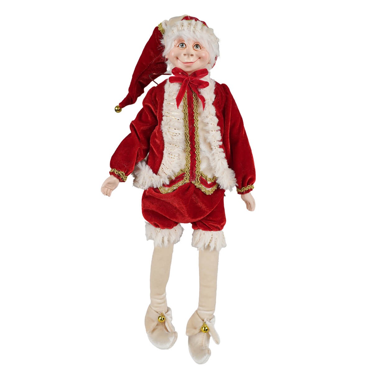 Elfo Natalizio in Velluto Rosso con Dettagli Dorati 2 Misure