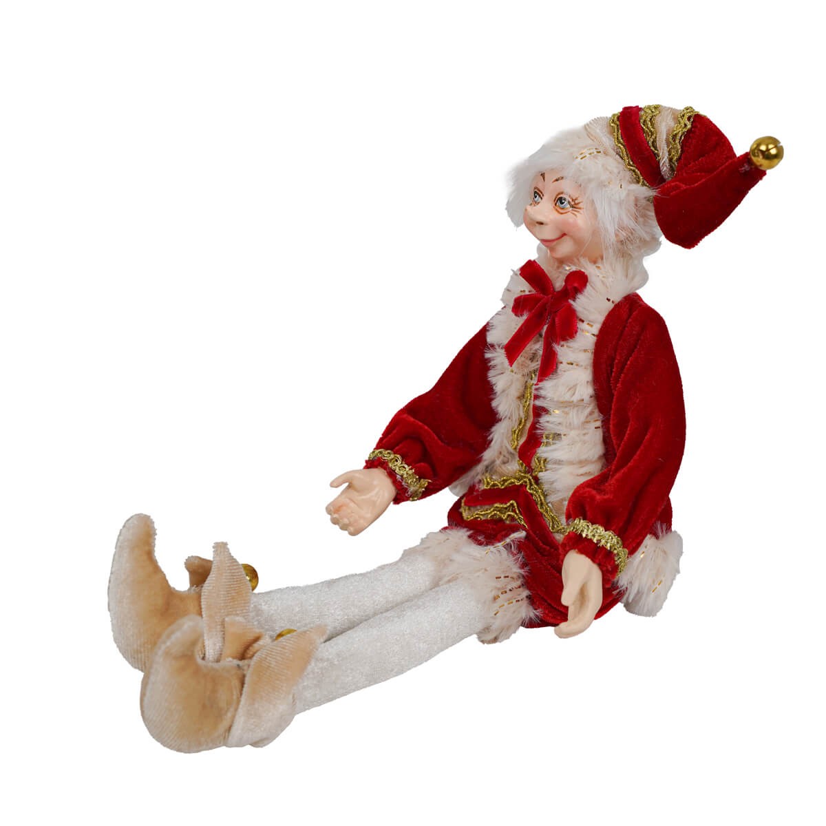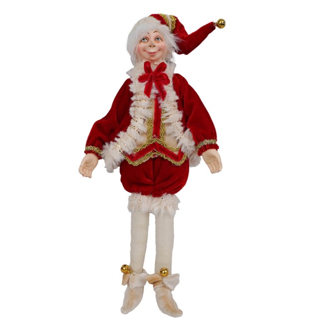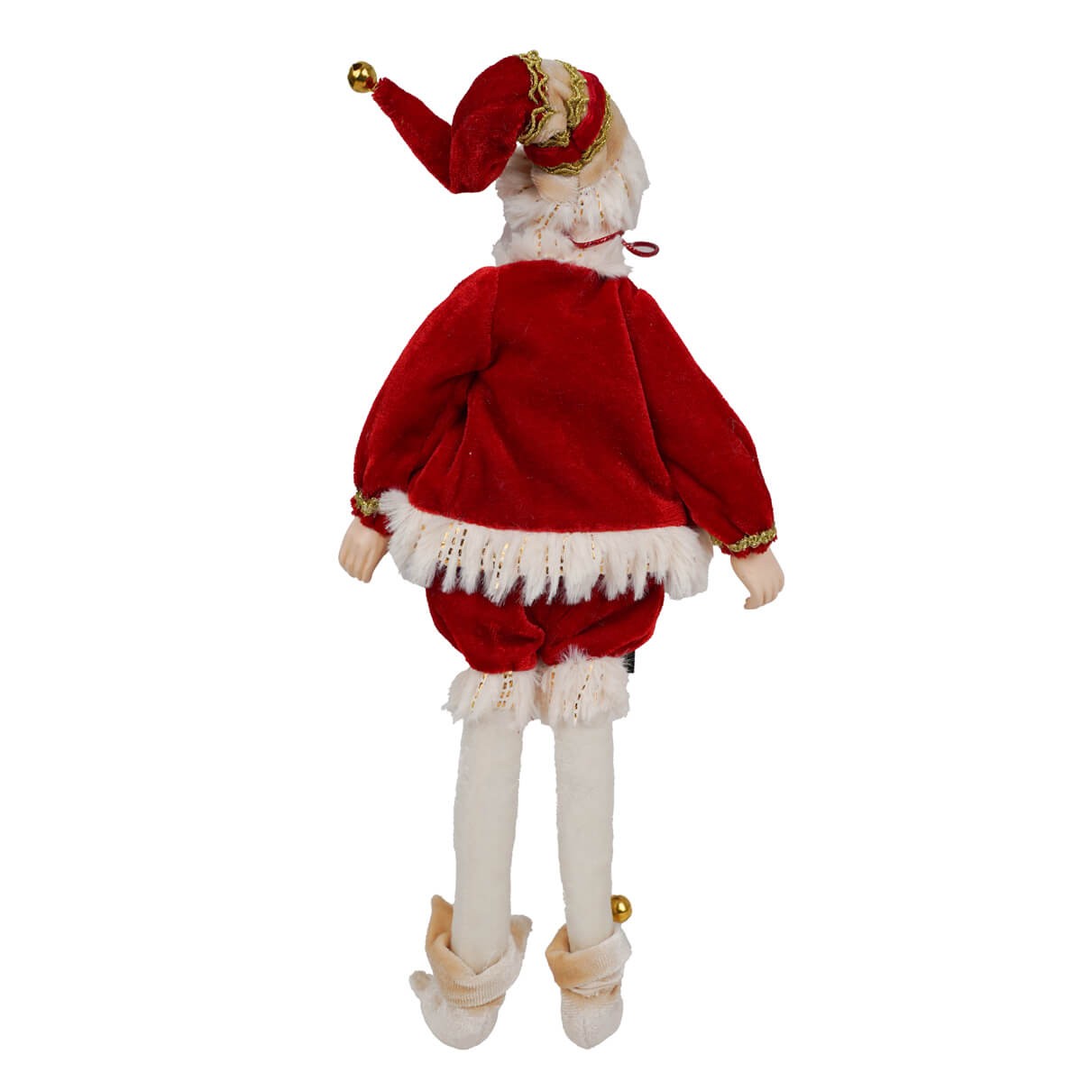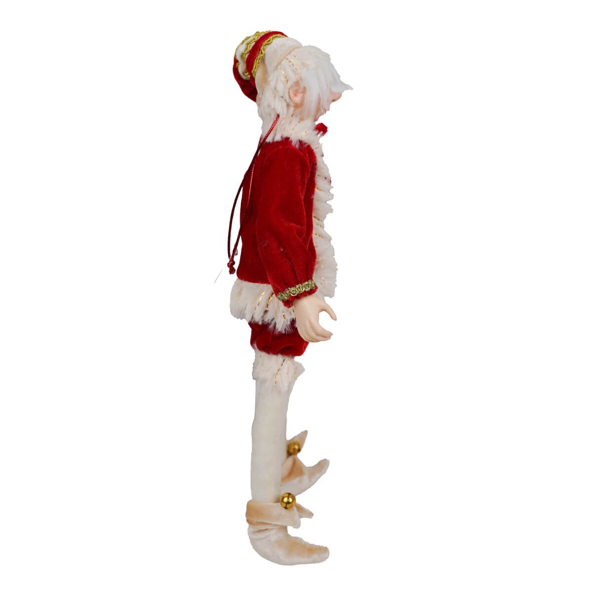 • Elfo natalizio decorativo con abito in velluto rosso e dettagli dorati