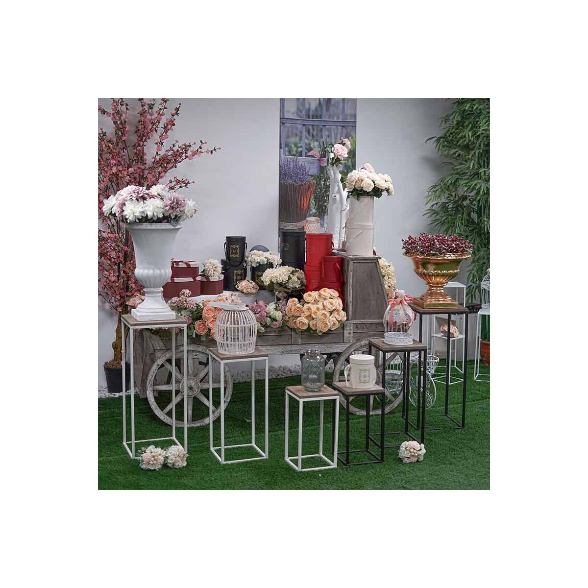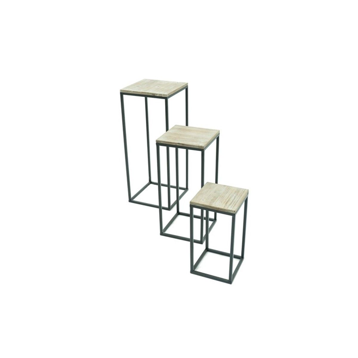 Il Set Bingo Black, dallo stile industrial, è perfetto per arredare con stile ambienti shabby-country/chic. Composto da 3 tavolini con struttura in ferro e top quadrato in legno, perfetti come tavolini o punti di appoggio nella tua casa. Potrai disporli nel tuo salotto accanto al divano, come poggia-riviste e tavolino, utilizzarli separati in diversi angoli della tua casa, oppure come arredo per il tuo giardino.