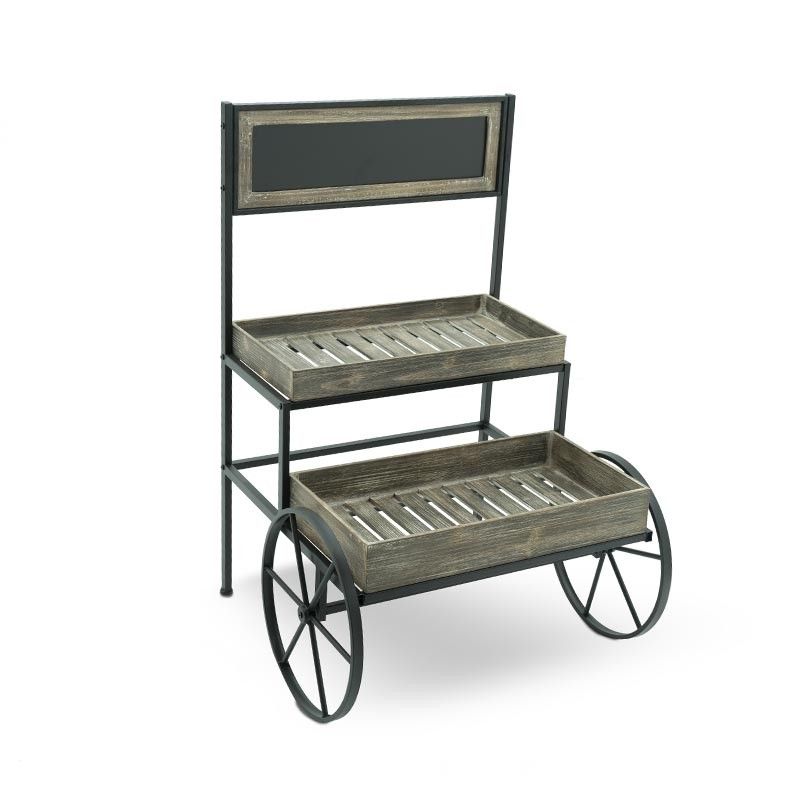 Il Carretto Espositore Clint Black, realizzato con una struttura in ferro e due ripiani in legno, è perfetto se si vuole arredare in modo originale il proprio giardino o terrazza. Oppure, se si possiede un'attività, potrete usarlo come espositore per la merce.