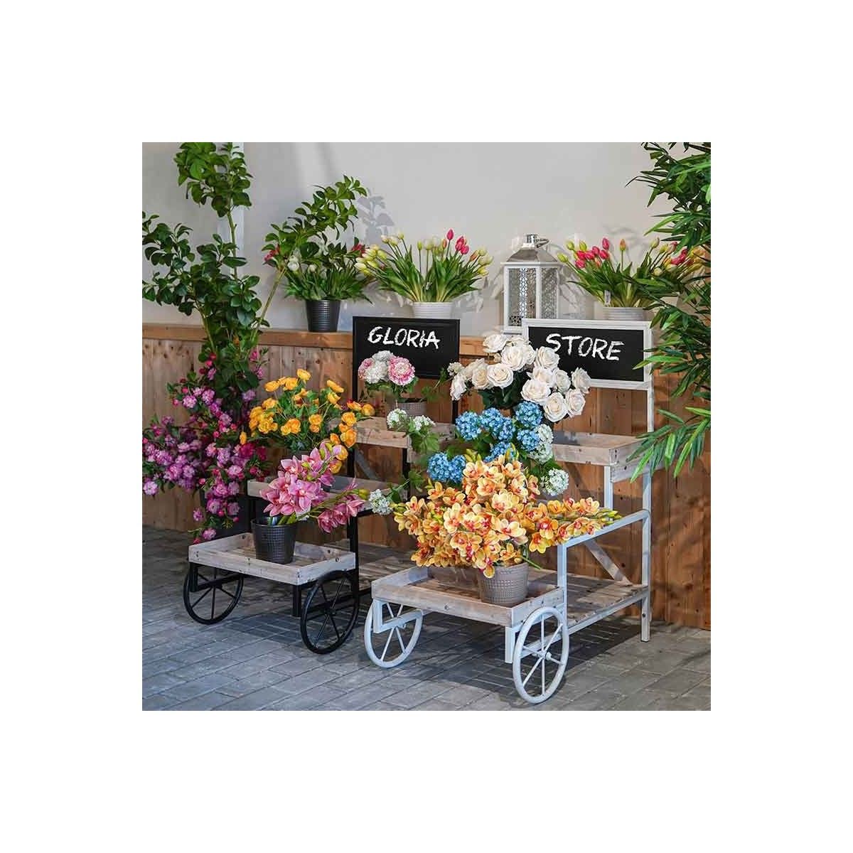 Dallo stile industrial il Carretto Espositore Draco White è perfetto per arredare con stile ambienti shabby-country/chic. Realizzato con struttura in ferro e ripiani in legno. Perfetto per dare un tocco in più al giardino o al terrazzo di casa tua. Grazie all'alta qualità dei materiali è resistente agli agenti atmosferici e alle intemperie.