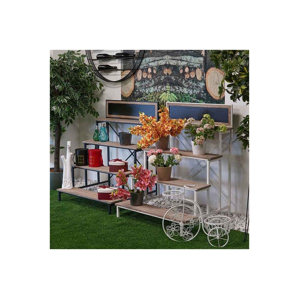 Dallo stile industrial l' Espositore Samba White è perfetto per arredare con stile ambienti shabby-country/chic. Realizzato con struttura in ferro e ripiani in legno. Perfetto per dare un tocco in più al giardino o al terrazzo di casa tua. Grazie all'alta qualità dei materiali è resistente agli agenti atmosferici e alle intemperie.