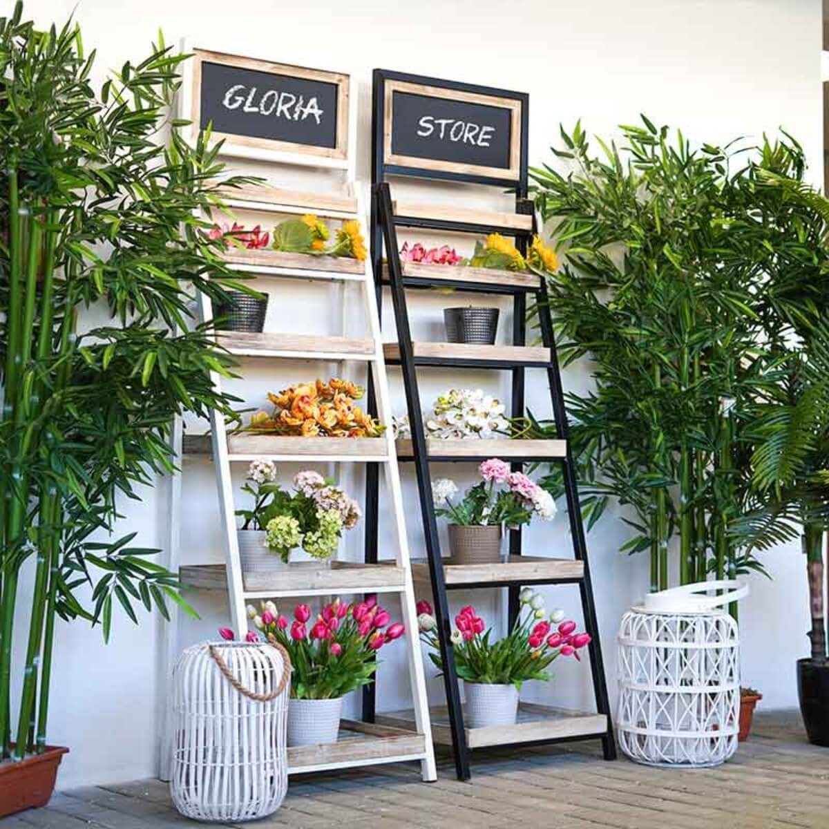 Dallo stile industrial l' Espositore Leyla White è perfetto per arredare con stile ambienti shabby-country/chic. Realizzato con struttura in ferro e ripiani in legno. Perfetto per dare un tocco in più al giardino o al terrazzo di casa tua. Grazie all'alta qualità dei materiali è resistente agli agenti atmosferici e alle intemperie.