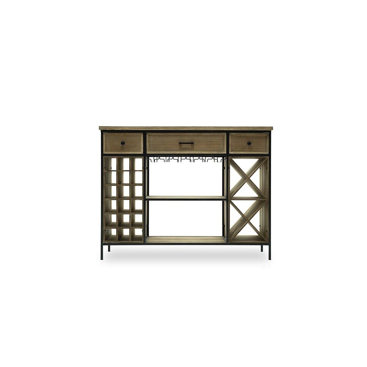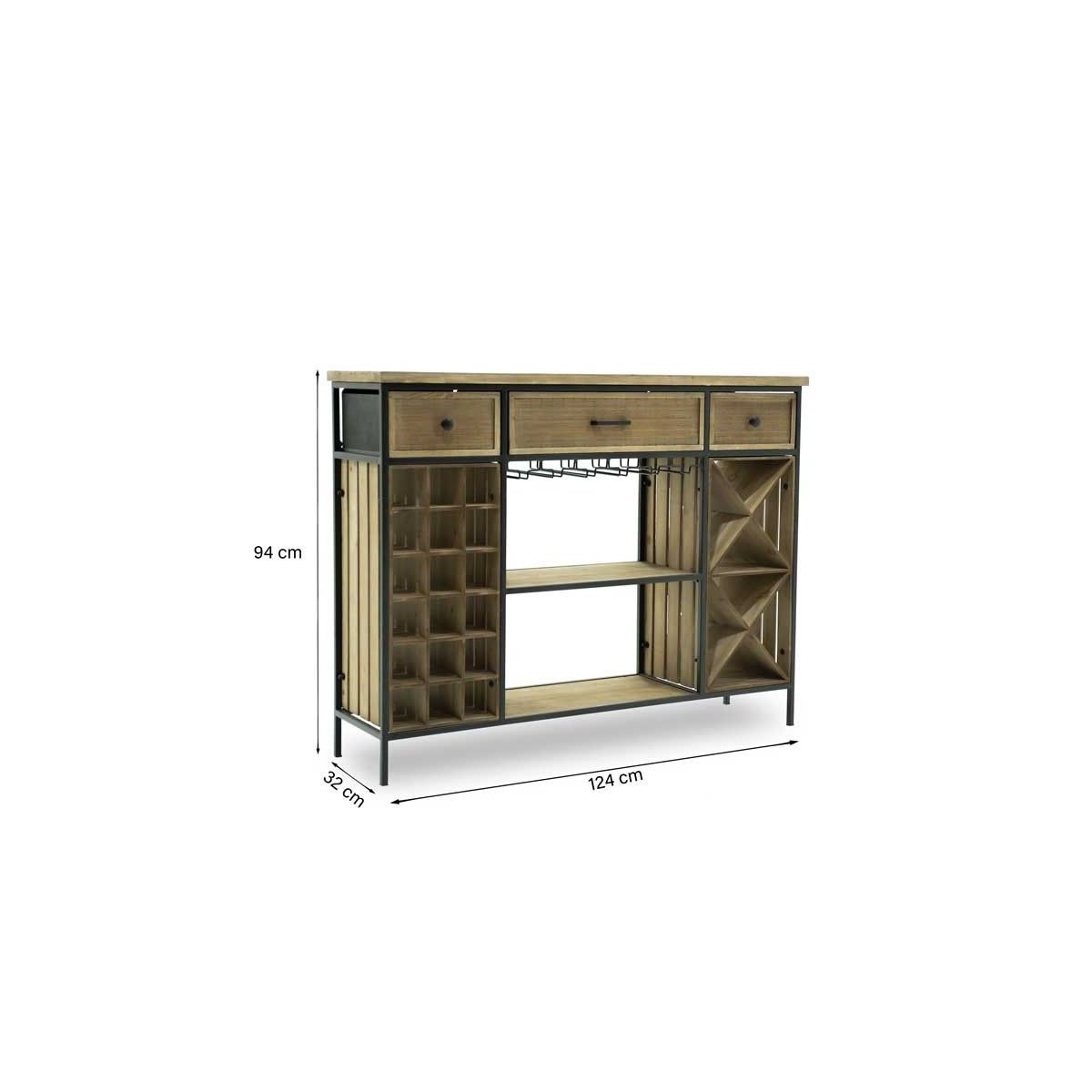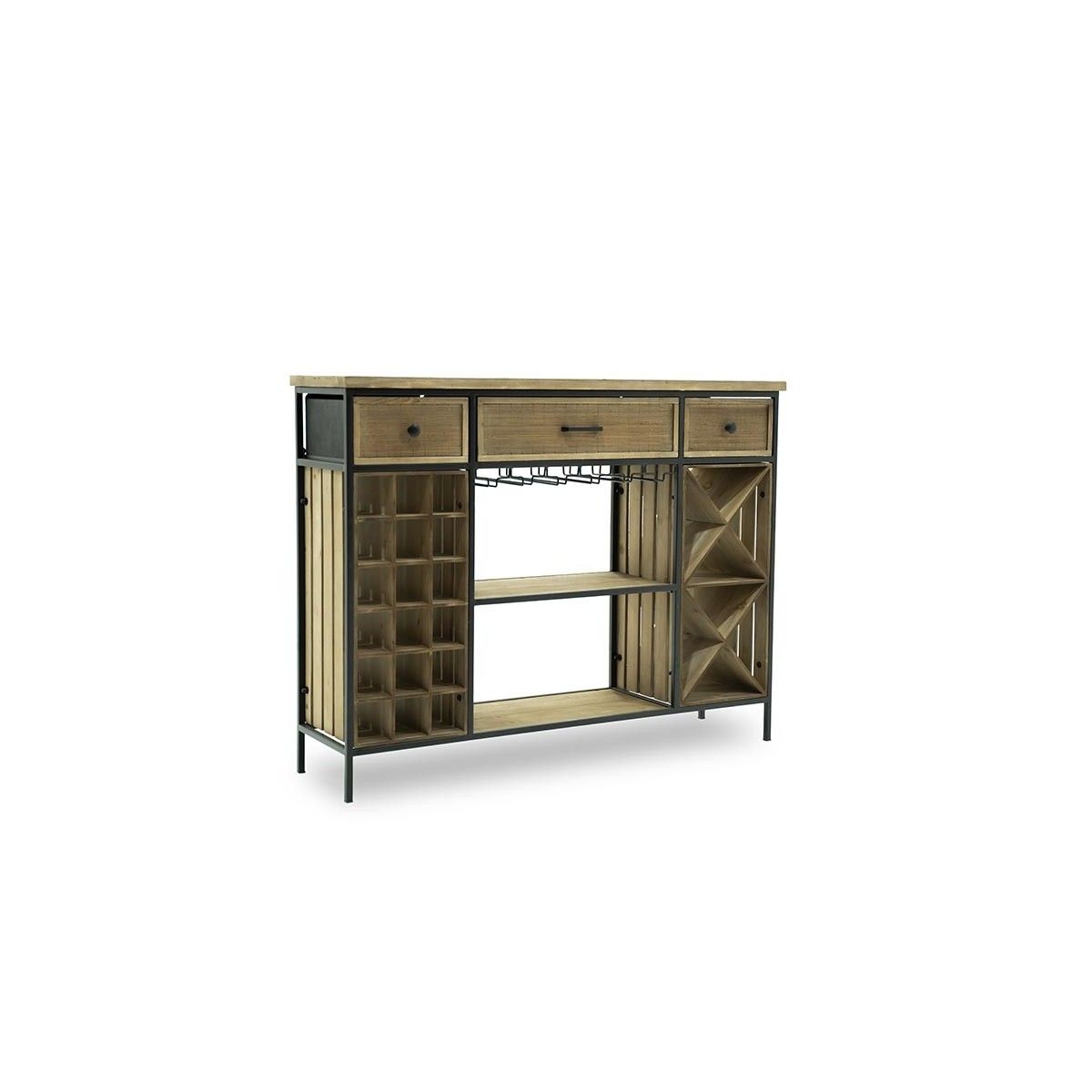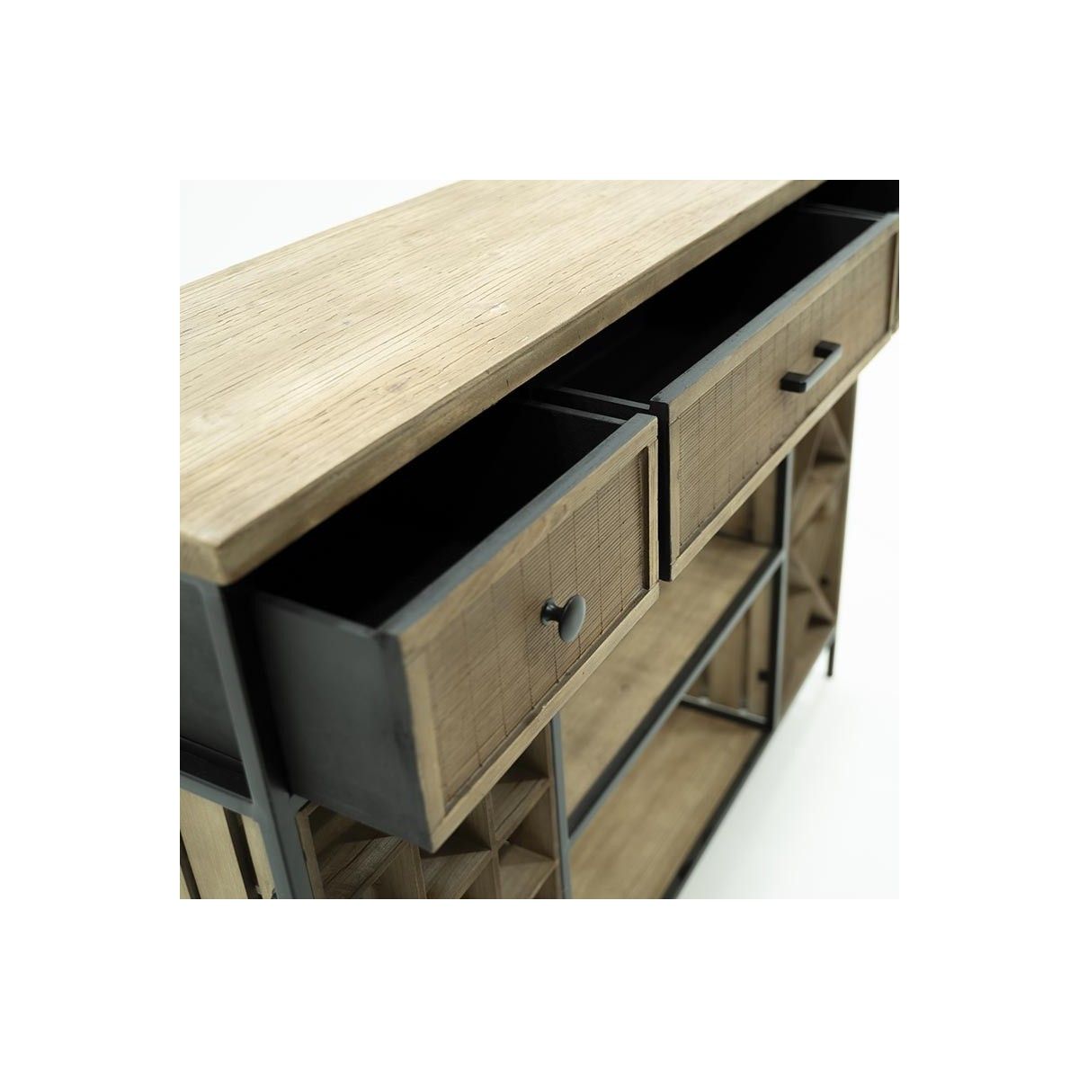 Dallo stile industrial lo scaffale Sid è perfetto per arredare con stile sia ambienti esterni che interni. Realizzato con una solida struttura in ferro con vari ripiani e cassetti in legno; presenta anche un comodo portabottiglie dove potrete esporre le vostre bevande in modo del tutto sicuro.