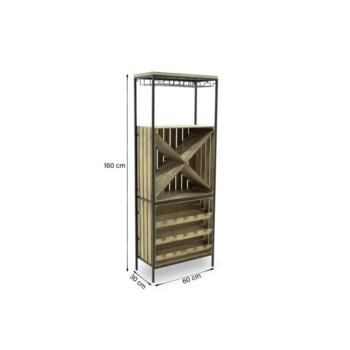Dallo stile industrial lo scaffale Rex è perfetto per arredare con stile sia ambienti esterni che interni. Realizzato con una solida struttura in ferro e vari ripiani in legno; presenta un comodo portabottiglie dove potrete esporre le vostre bevande in modo del tutto sicuro. Grazie all'alta qualità dei materiali è resistente agli agenti atmosferici e alle intemperie.
