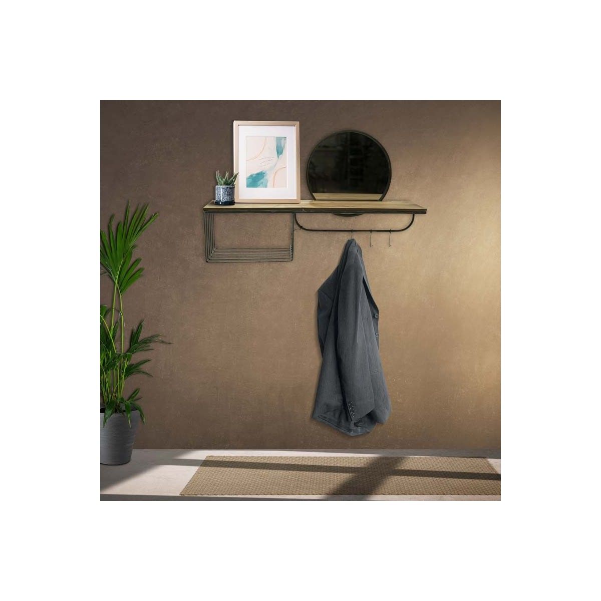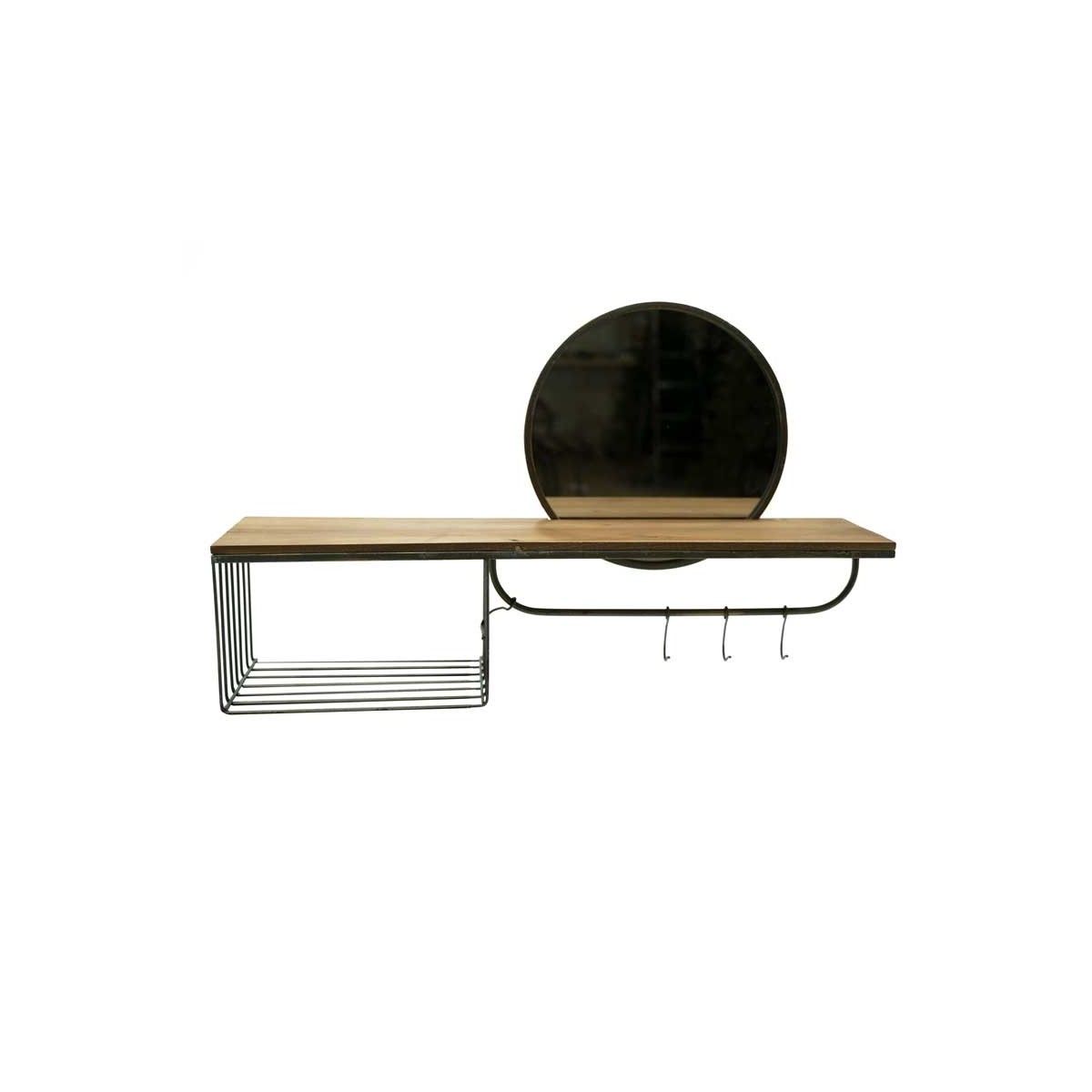 Realizzata con una solida struttura in ferro e il ripiano in legno, questa mensola multifunzionale con specchio e ganci appendiabiti rispecchia alla perfezione lo stile industrial. Ideale per dare un tocco di originalità alla vostra casa.