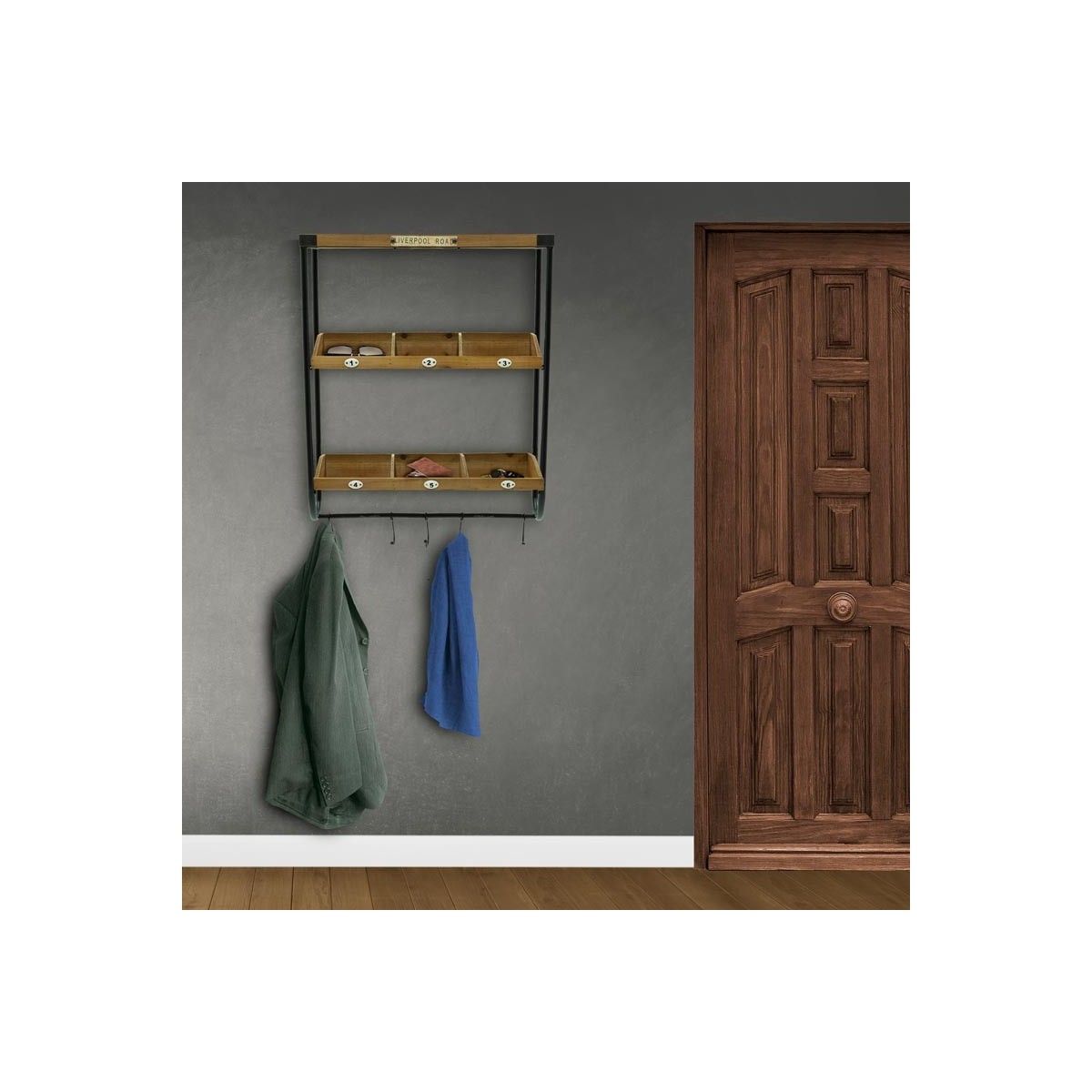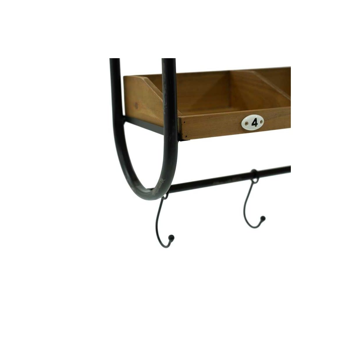 Realizzata con una solida struttura in ferro e ripiani in legno, questa mensola multifunzionale con 6 separatori e 5 ganci rispecchia alla perfezione lo stile industrial. Ideale come svuota-tasche all'ingresso o come porta-spezie in cucina, è di certo un complemento d'arredo perfetto per chi cerca originalità per l'arredo della propria casa.