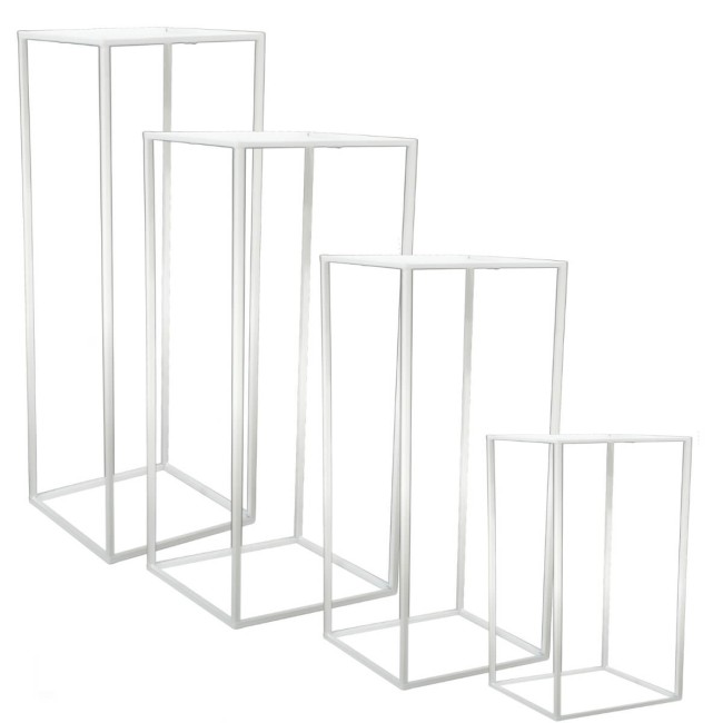 Questo set comprende 4 strutture da supporto in metallo di colore bianco. Questi supporti a colonna sono perfetti per realizzare decorazioni esclusive per qualsiasi tipo di evento!