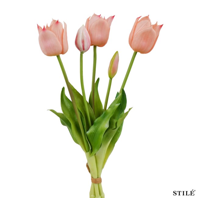 Fascio di 5 Tulipani Artificiali Real Touch 38 cm 7 Colori