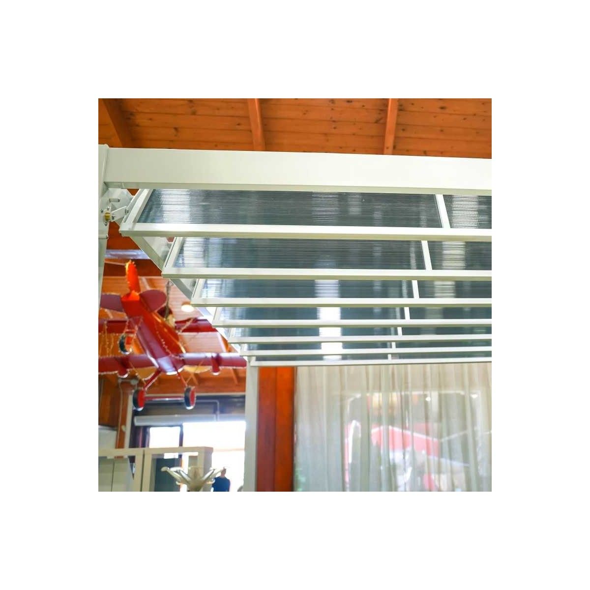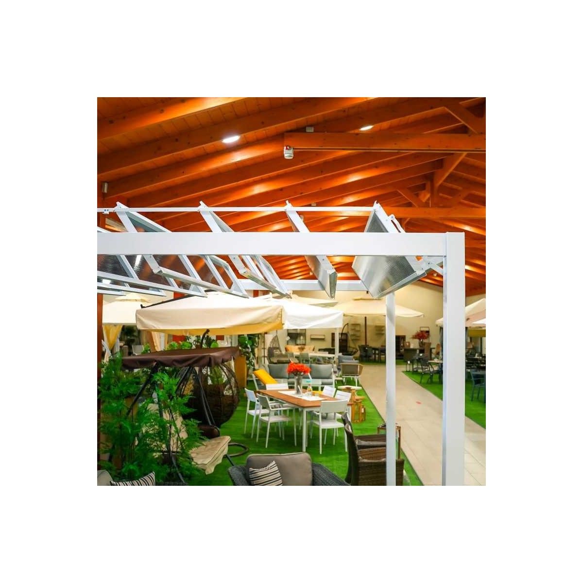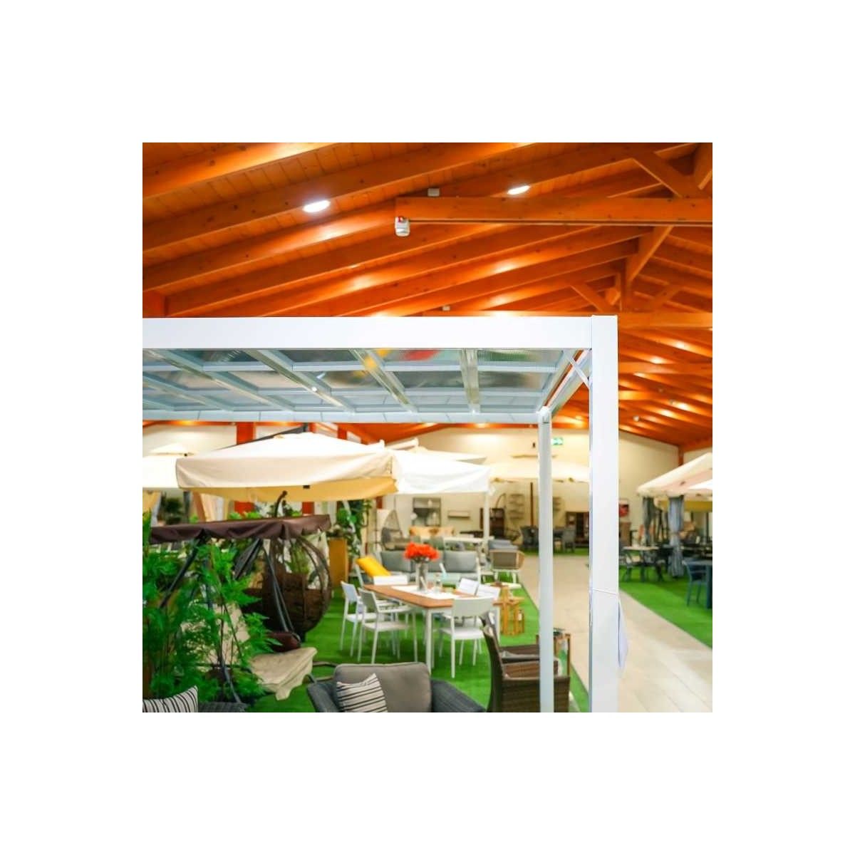 Se hai uno spazio esterno da dover arredare, di certo non può mancare un gazebo! Perfetto per creare zone d'ombra sotto le quali rilassarsi. Realizzato con una solida struttura in alluminio bianco vi assicura un'ottima stabilità anche in caso di giornate ventose; la copertura, invece, è realizzata con pannelli in policarbonato mobili quindi potrete aprirli o chiuderli all'occorrenza e regolare la quantità di luce che vorrete far penetrare.