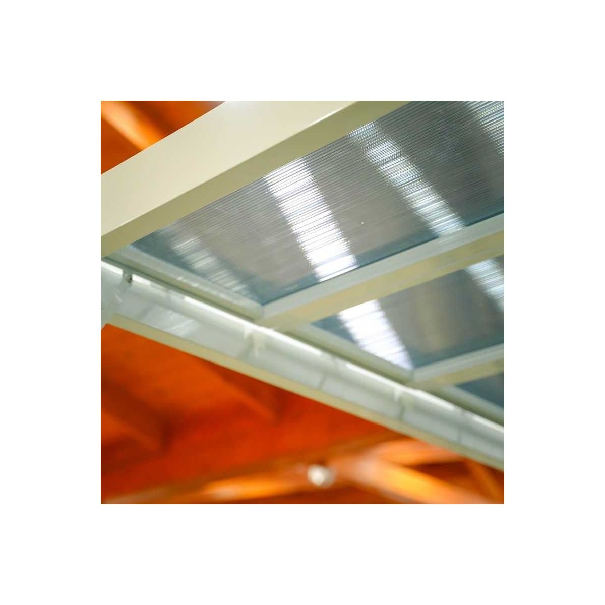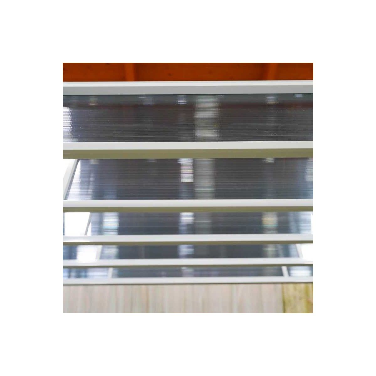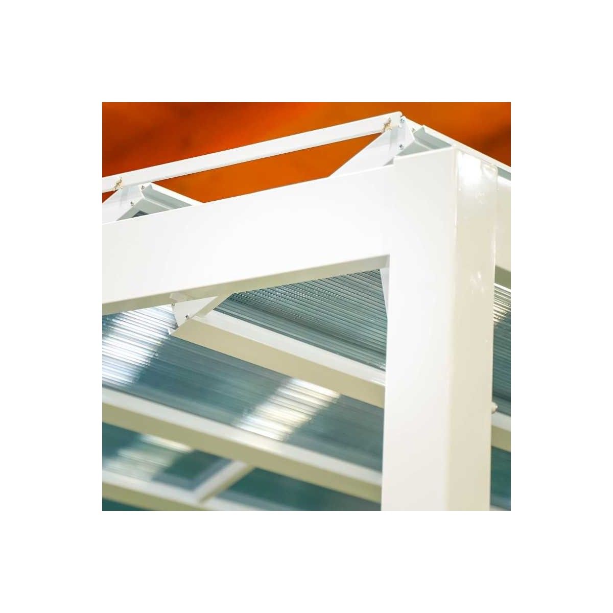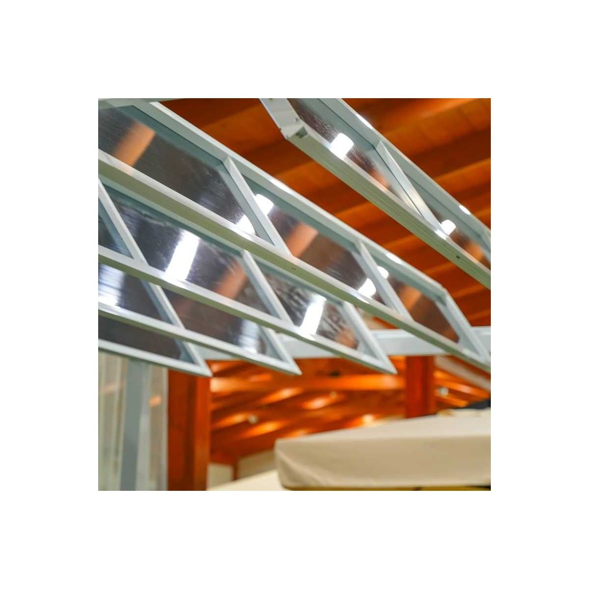 Se hai uno spazio esterno da dover arredare, di certo non può mancare un gazebo! Perfetto per creare zone d'ombra sotto le quali rilassarsi. Realizzato con una solida struttura in alluminio bianco vi assicura un'ottima stabilità anche in caso di giornate ventose; la copertura, invece, è realizzata con pannelli in policarbonato mobili quindi potrete aprirli o chiuderli all'occorrenza e regolare la quantità di luce che vorrete far penetrare.