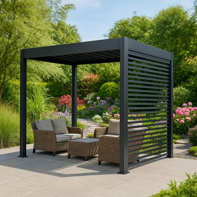 Progettato esclusivamente per i lati delle pergole bioclimatiche con apertura da 4 metri, questo pannello frangisole è la scelta ideale per chi desidera rendere lo spazio esterno più riservato, protetto e stilisticamente armonioso.
