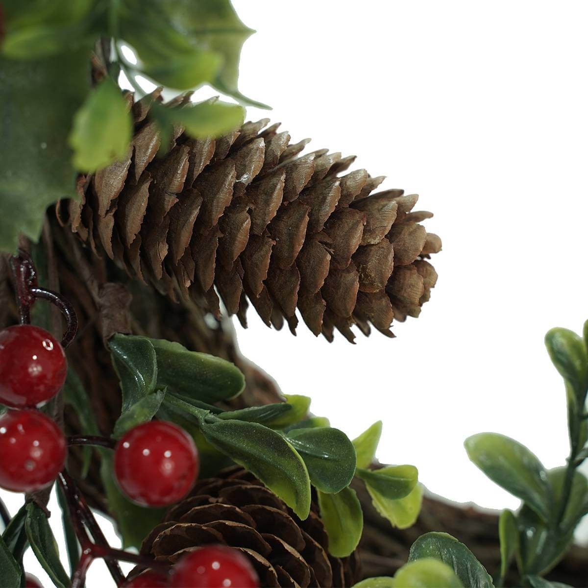 Trasforma l’ingresso della tua casa o il cuore del tuo salotto con una decorazione iconica delle feste: la ghirlanda natalizia da 45 cm con foglie di agrifoglio verde, bacche rosse lucide e pigne naturali. Un mix perfettamente equilibrato tra eleganza e tradizione, ideale per creare un’atmosfera accogliente e autenticamente natalizia.