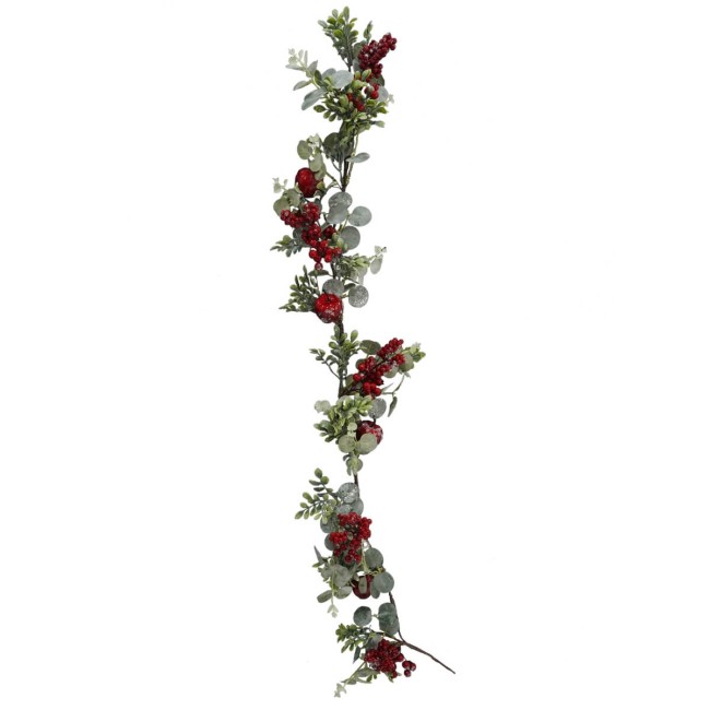 Tralcio Natalizio di Foglie Verdi, Bacche e Mele L.120 cm
