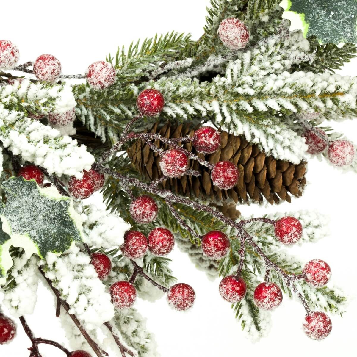 - Composta da rami di pino innevati, agrifoglio e bacche rosse