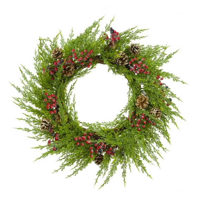 Ghirlanda Natalizia con Pigne e Bacche Rosse D.70 cm