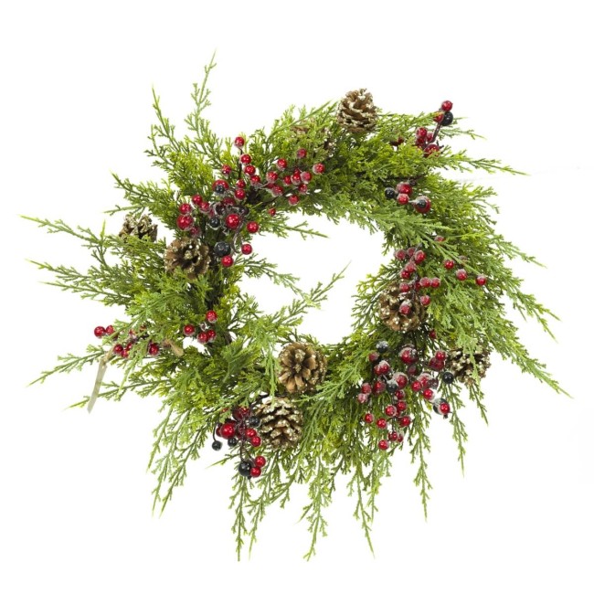 Ghirlanda Natalizia con Pigne e Bacche Rosse D.55 cm