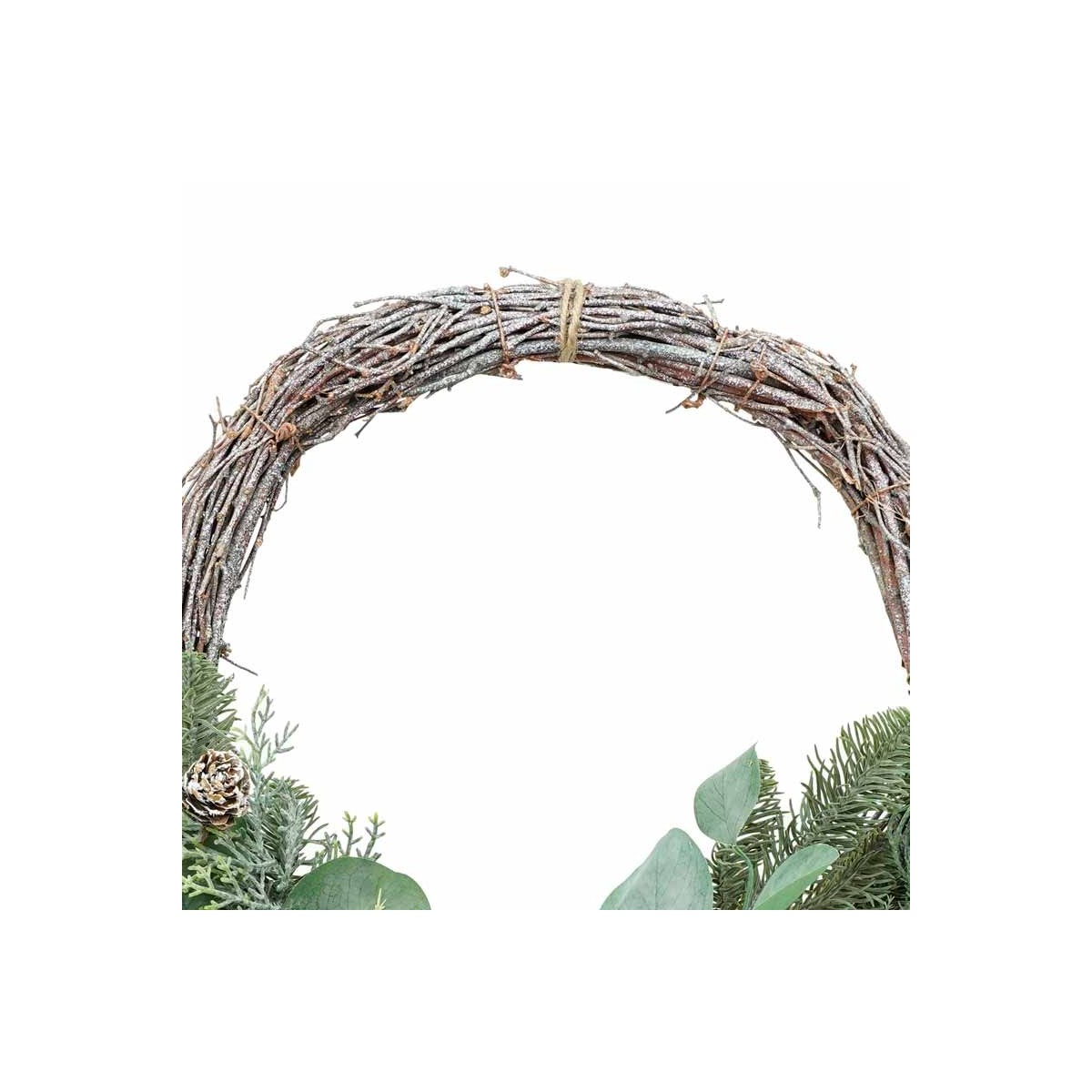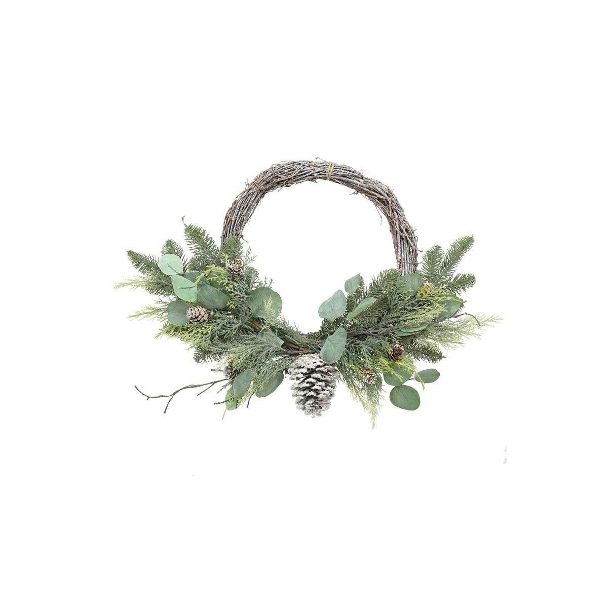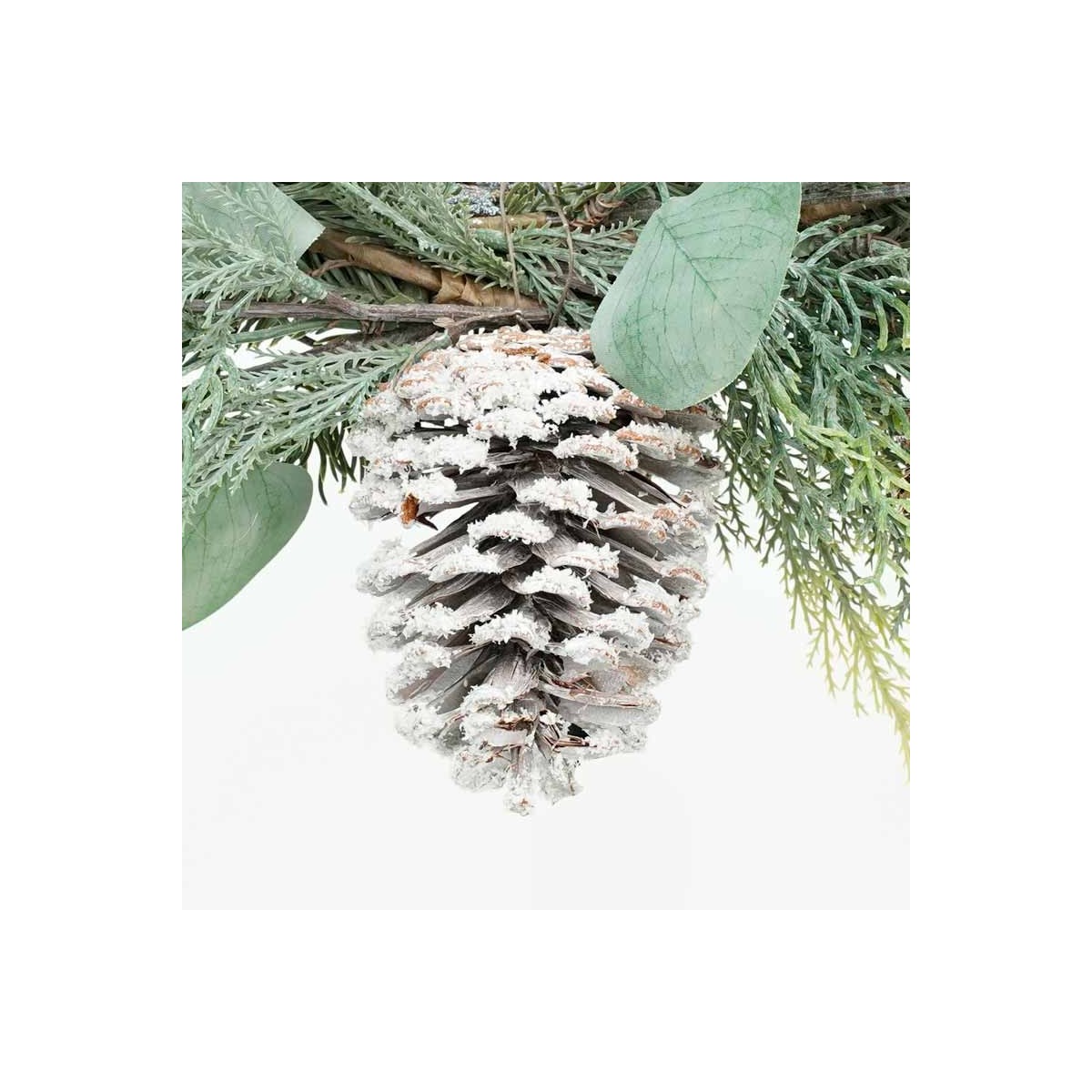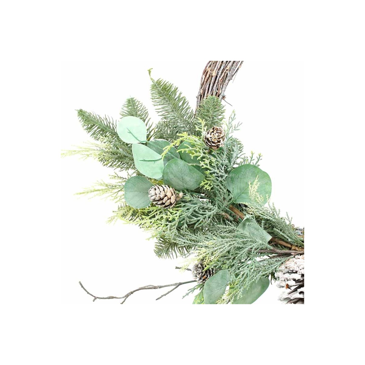 Swag Natalizio su Corona Naturale con Foglie Verdi e Pigne D.55 cm