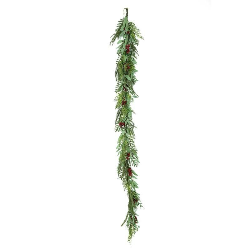 Ghirlanda Natalizia Verde con Bacche Rosse L.187 cm