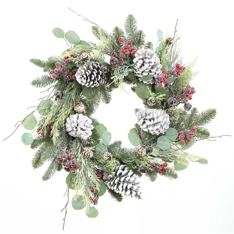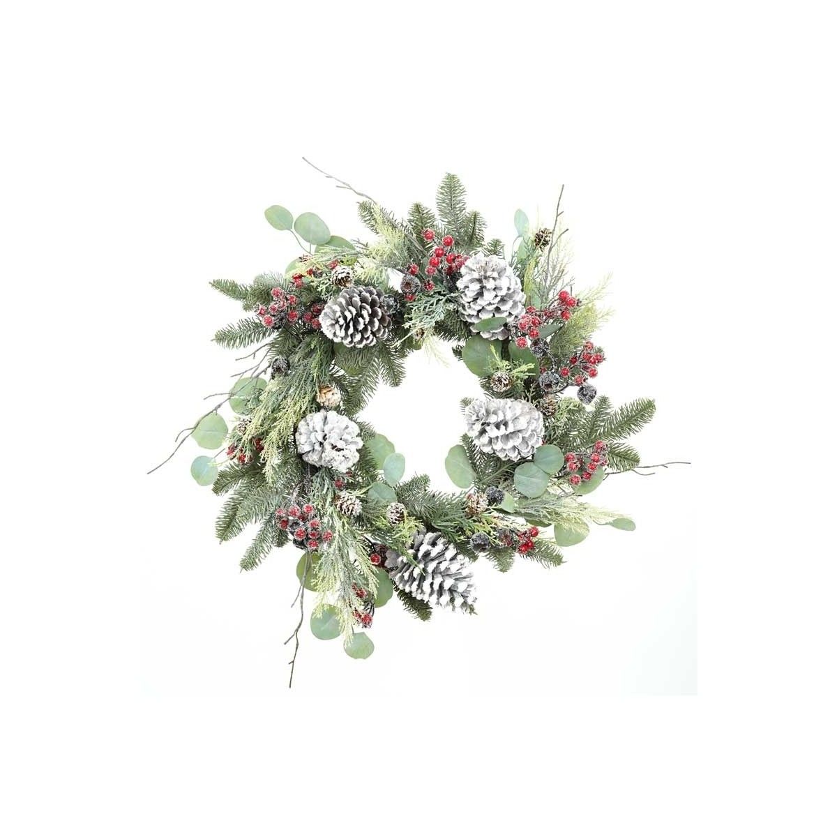Corona Natalizia con Pigne e Bacche Rosse D.68 cm