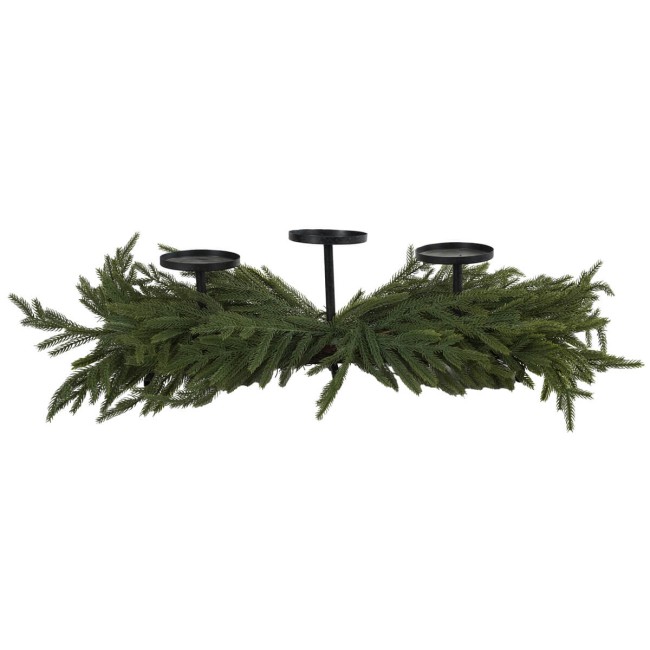 Porta candele natalizio con rami verdi in PE – Decorazione elegante per tavola o camino, 3 candele – Lunghezza 96 cm
