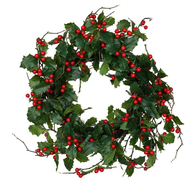 - Ghirlanda natalizia con foglie verdi realistiche e bacche rosso scuro dallo stile tradizionale.