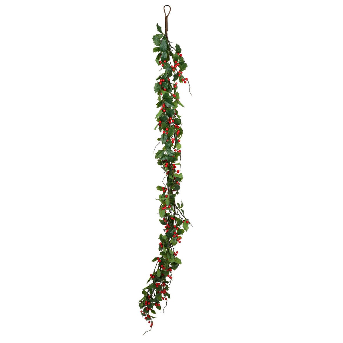 Tralcio Natalizio con Foglie Verdi e Bacche Rosso Scuro 180 cm in PE – Decorazione Realistica per Natale
