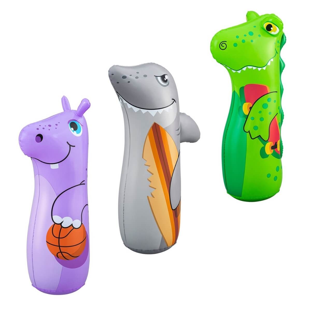 Il Pungiball Gonfiabile Bestway Animals 89 cm è il compagno di gioco ideale per i bambini dai 3 anni in su, progettato per stimolare l'attività fisica e lo sviluppo della coordinazione occhio-mano. Realizzato in vinile resistente e dotato di valvola di sicurezza, questo sacco da boxe gonfiabile presenta una base stabilizzante che può essere riempita con sabbia o acqua, garantendo stabilità durante l'uso. Disponibile in tre divertenti design assortiti (coccodrillo, ippopotamo e squalo), il Pungiball è perfetto per l'uso sia in ambienti interni che esterni, offrendo ai bambini un modo sicuro e divertente per liberare energia e migliorare le proprie abilità motorie.