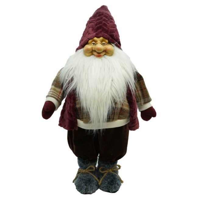 Gnomo Natalizio in Tessuto e Velluto Bordeaux H.86 cm