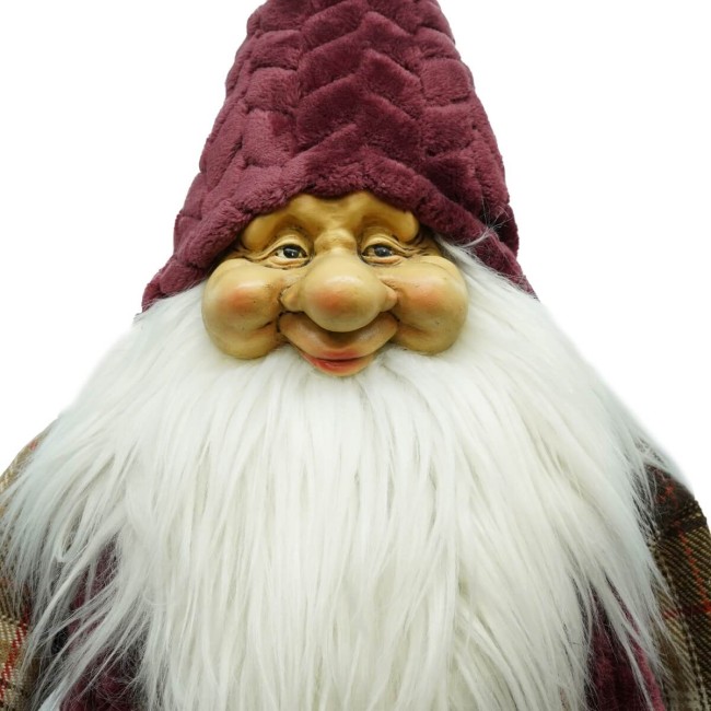 Realizzato con materiali di alta qualità, questo gnomo decorativo presenta un'espressione simpatica e un design curato nei minimi dettagli: il cappello trapuntato in velluto bordeaux o verde, la lunga barba bianca in pelliccia sintetica, i pantaloni in velluto e la maglia a fantasia scozzese donano un tocco autentico e raffinato. Perfetto da collocare a terra, accanto all’albero o in vetrina, porta un’atmosfera calda e fiabesca in qualsiasi ambiente.