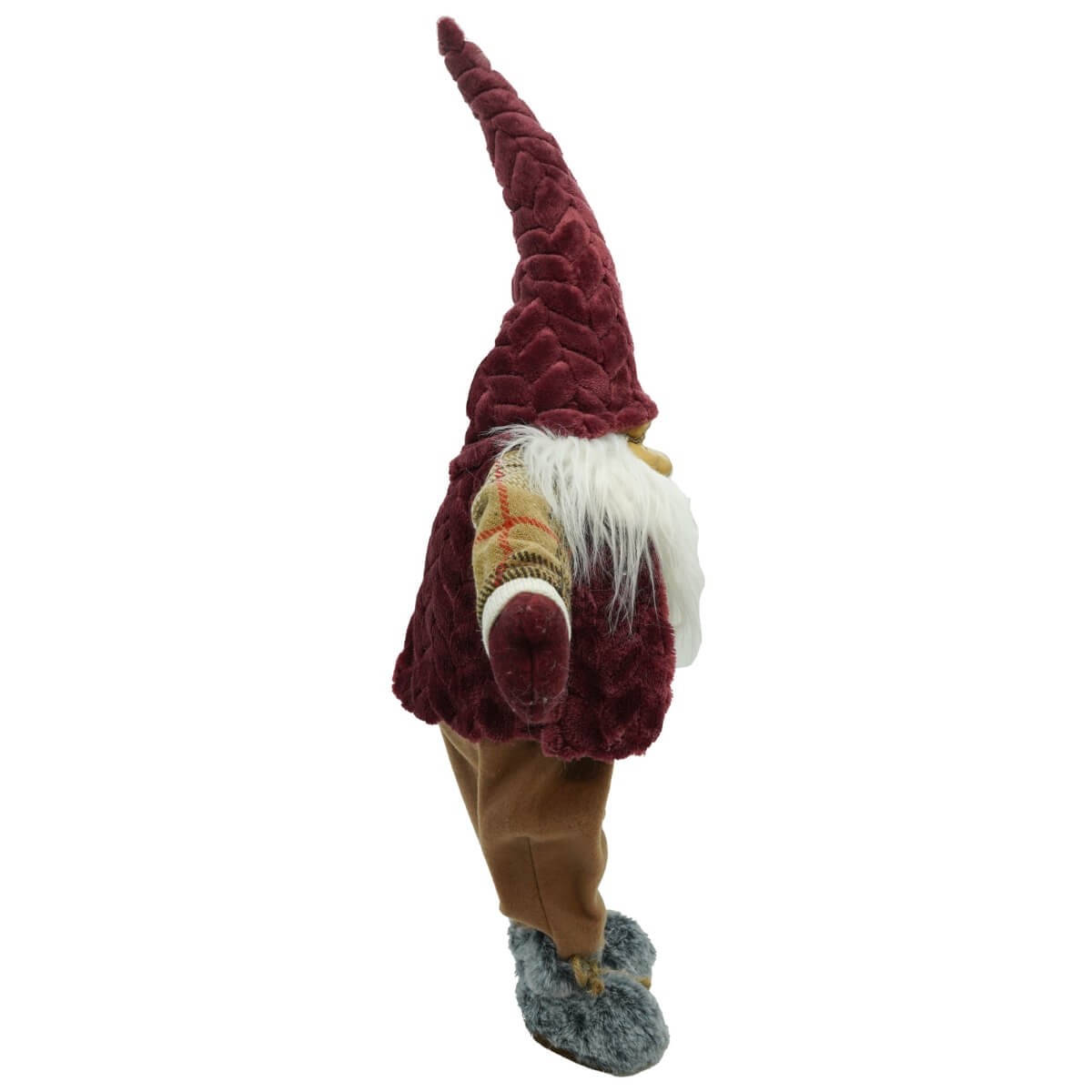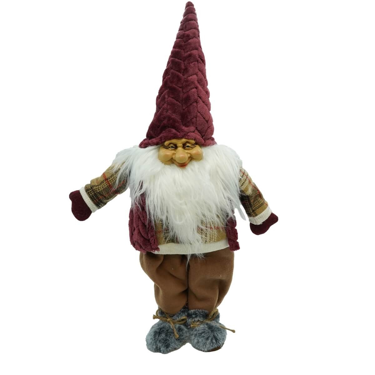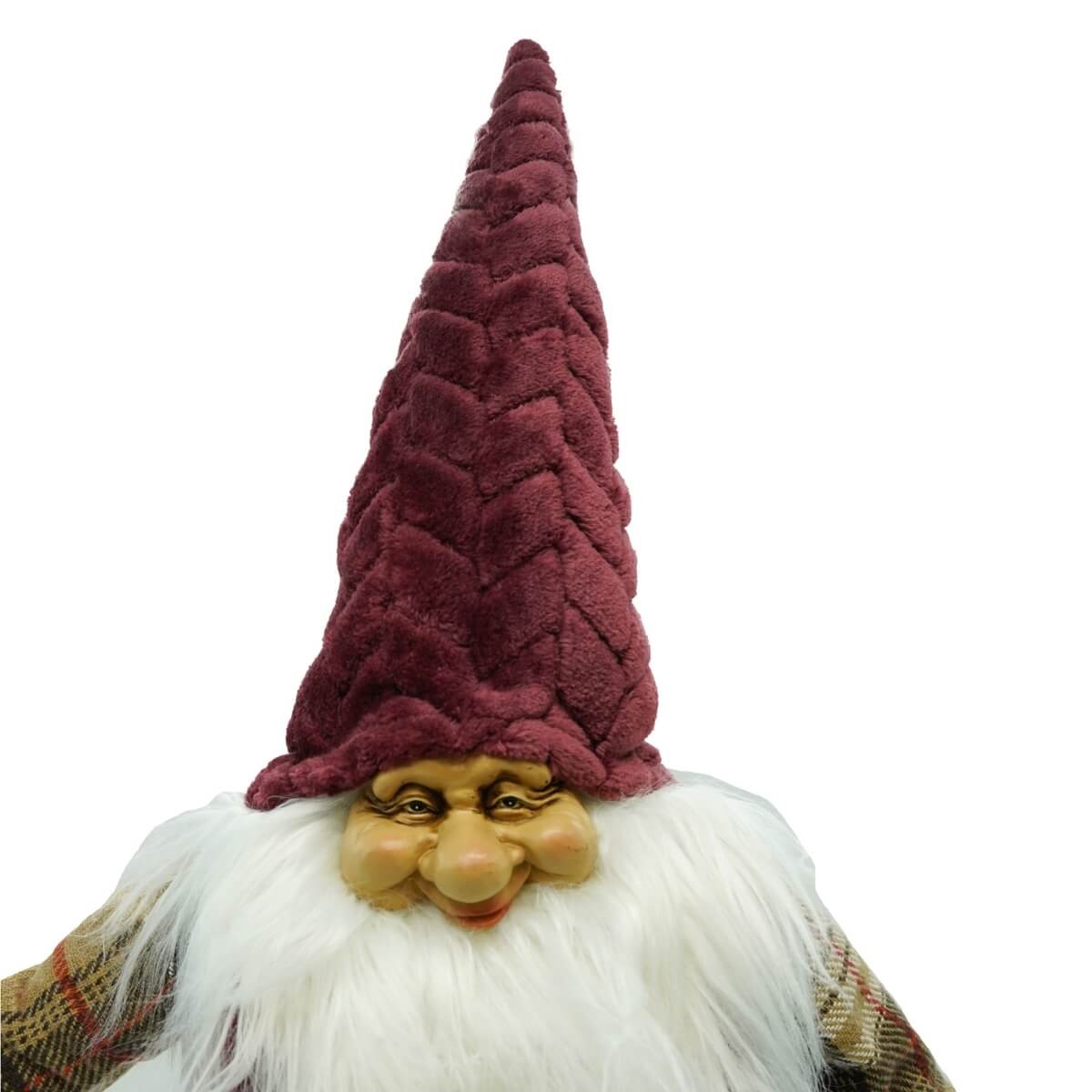 Gnomo Natalizio in Tessuto e Velluto – H.66 cm – Con Cappello Bordeaux o Verde e Barba Bianca