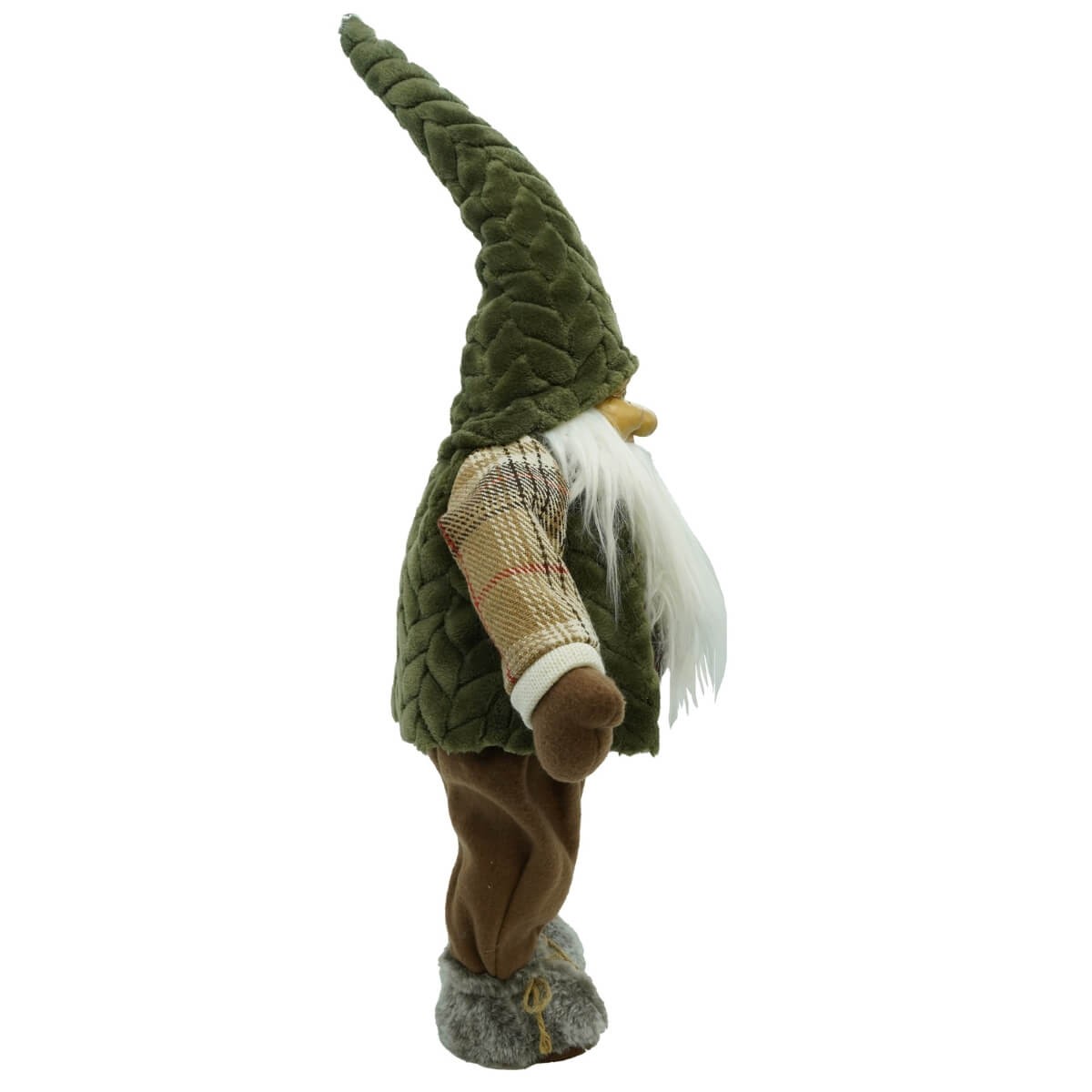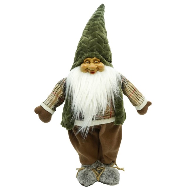 Realizzato con materiali di alta qualità, questo gnomo decorativo presenta un'espressione simpatica e un design curato nei minimi dettagli: il cappello trapuntato in velluto bordeaux o verde, la lunga barba bianca in pelliccia sintetica, i pantaloni in velluto e la maglia a fantasia scozzese donano un tocco autentico e raffinato. Perfetto da collocare a terra, accanto all’albero o in vetrina, porta un’atmosfera calda e fiabesca in qualsiasi ambiente.