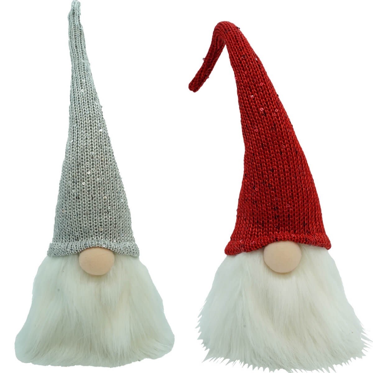 Testa di Gnomo Natalizio – H.40 cm – Cappello Rosso o Grigio in Maglia con Barba Bianca