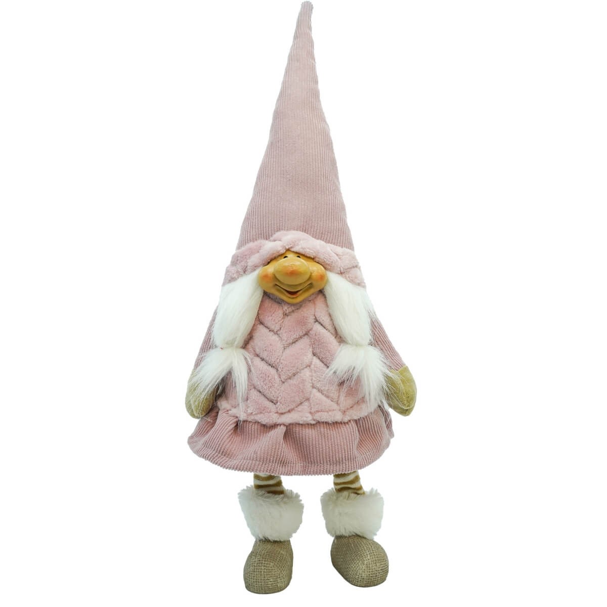 Decora la tua casa con un tocco di dolcezza grazie a questo gnomo natalizio in piedi da 54 cm, disponibile in 2 modelli: gnomo con barba e gnomo con trecce. Il loro abbigliamento in morbido tessuto rosa, impreziosito da dettagli effetto maglia, rende questi personaggi perfetti per ambientazioni natalizie raffinate e romantiche.